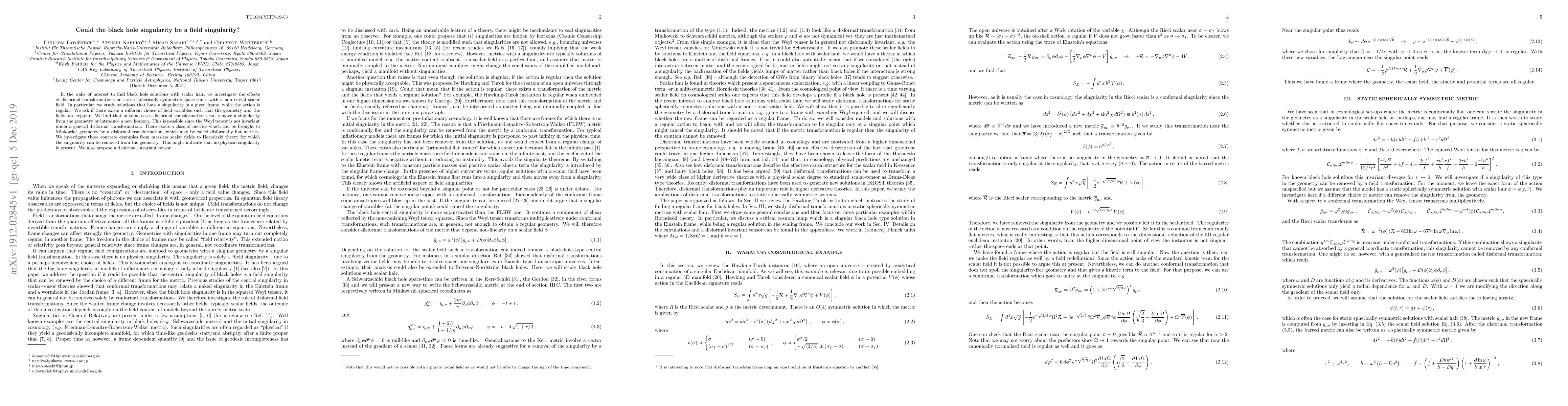 In the wake of interest to find black hole solutions with scalar hair, we investigate the effects of disformal transformations on static spherically symmetric space-times with a non-trivial scalar field. In particular, we study solutions that have a singularity in a given frame, while the action is regular. We ask if there exists a different choice of field variables such that the geometry and the fields are regular. We find that in some cases disformal transformations can remove a singularity from the geometry or introduce a new horizon. This is possible since the Weyl tensor is not invariant under a general disformal transformation. There exists a class of metrics which can be brought to Minkowksi geometry by a disformal transformation, which may be called disformally flat metrics. We investigate three concrete examples from massless scalar fields to Horndeski theory for which the singularity can be removed from the geometry. This might indicate that no physical singularity is present. We also propose a disformal invariant tensor.