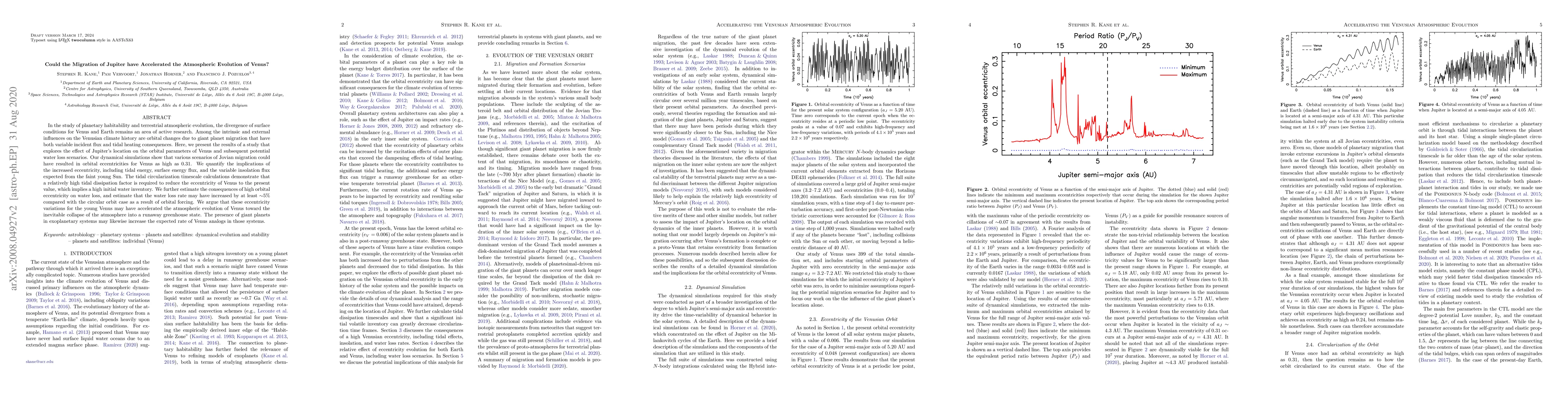 This study investigates how Jupiter's migration could have influenced the orbital eccentricity and atmospheric evolution of Venus, suggesting that increased orbital eccentricity due to Jovian migration may have accelerated the planet's transition to a runaway greenhouse state by enhancing water loss and tidal heating.