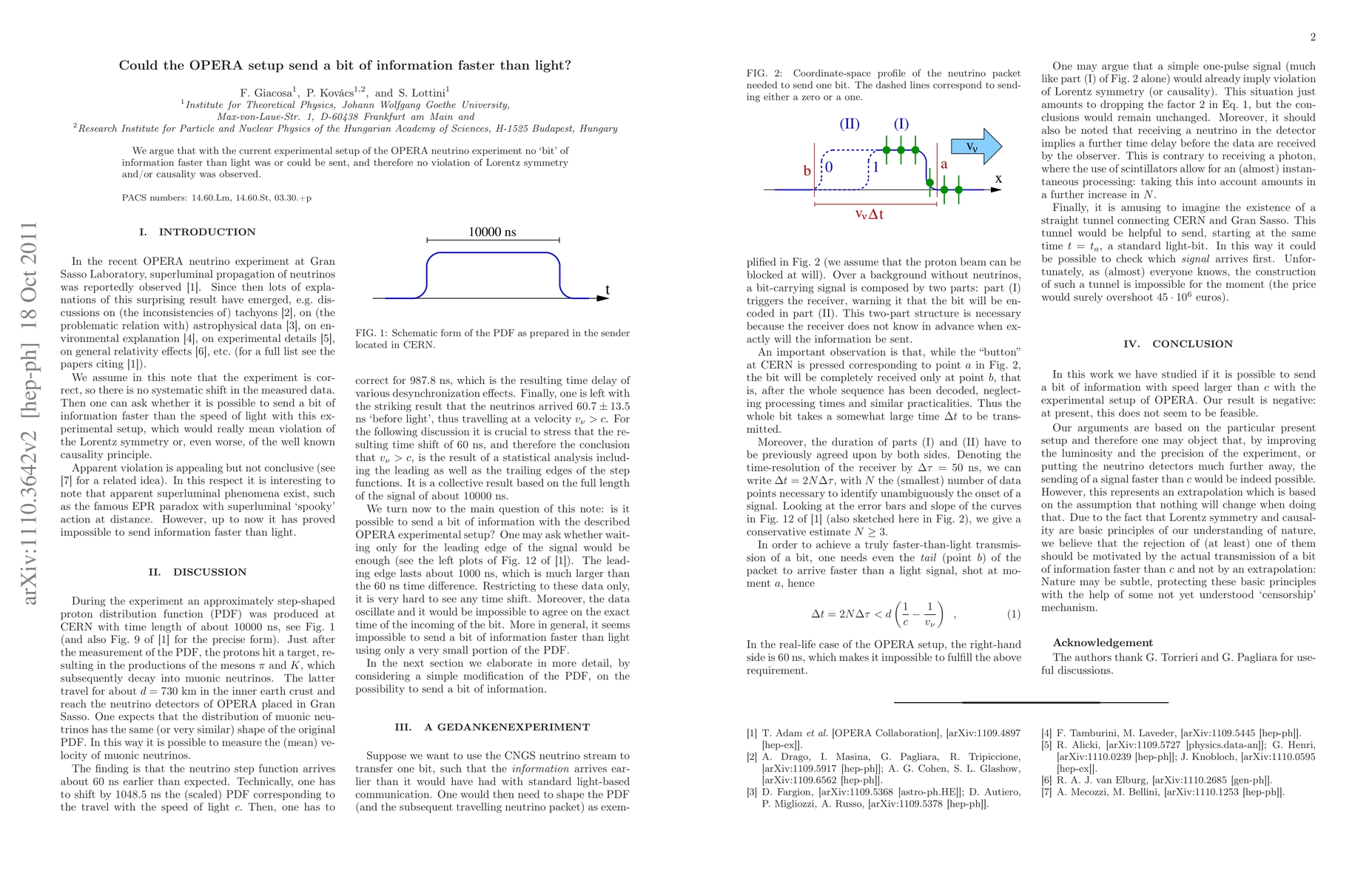 We argue that with the current experimental setup of the OPERA neutrino experiment no `bit' of information faster than light was or could be sent, and therefore no violation of Lorentz symmetry and/or causality was observed.