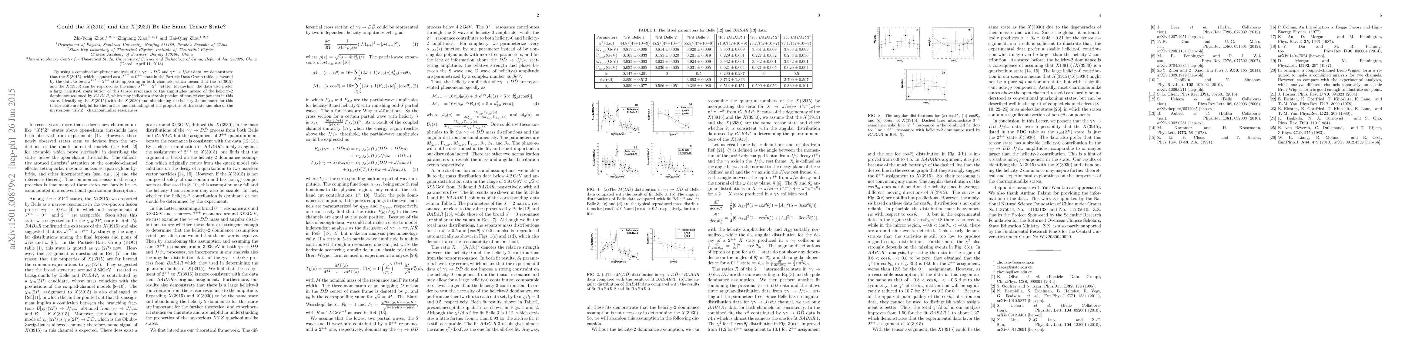 This study proposes that the $X(3915)$ and $X(3930)$ could be the same $J^{PC}=2^{++}$ tensor state, based on combined amplitude analysis of $\gamma\gamma\rightarrow D\bar{D}$ and $\gamma\gamma\rightarrow J/\psi\omega$ data, challenging the previously assumed helicity-2 dominance and suggesting non-$q\bar q$ components.