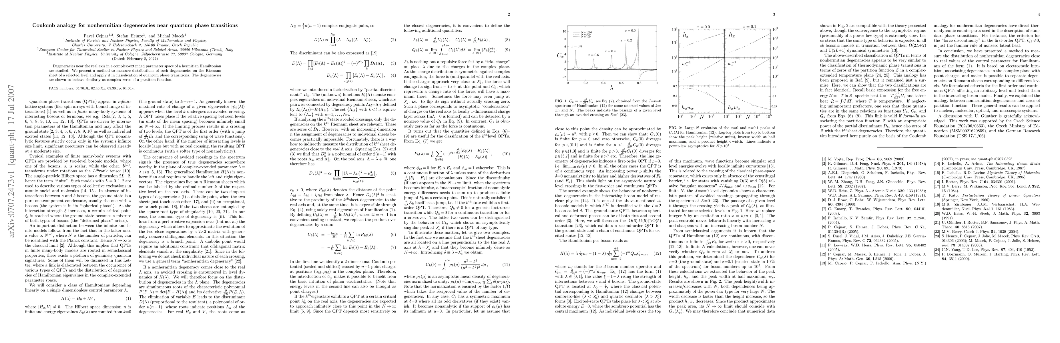 The findings have implications for classifying quantum phase transitions and understanding nonhermitian degeneracies in hermitian Hamiltonians.