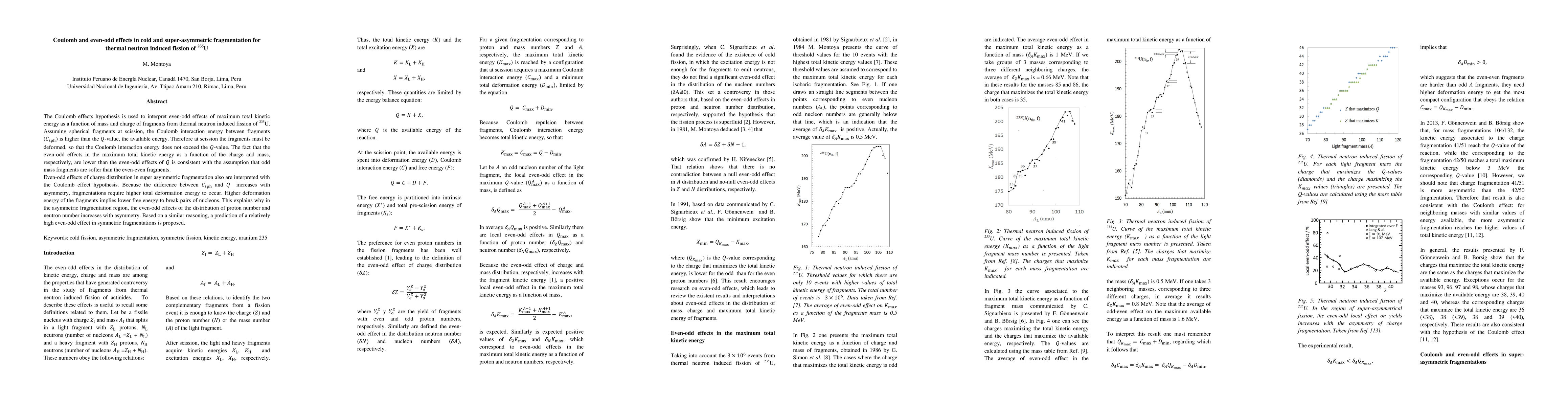 This paper uses the Coulomb effects hypothesis to explain even-odd effects in the maximum total kinetic energy and charge distribution from the thermal neutron-induced fission of 235U, suggesting that odd mass fragments are softer and require higher deformation energy for asymmetric fragmentation. It proposes a high even-odd effect in symmetric fragmentations due to lower free energy to break nucleon pairs.