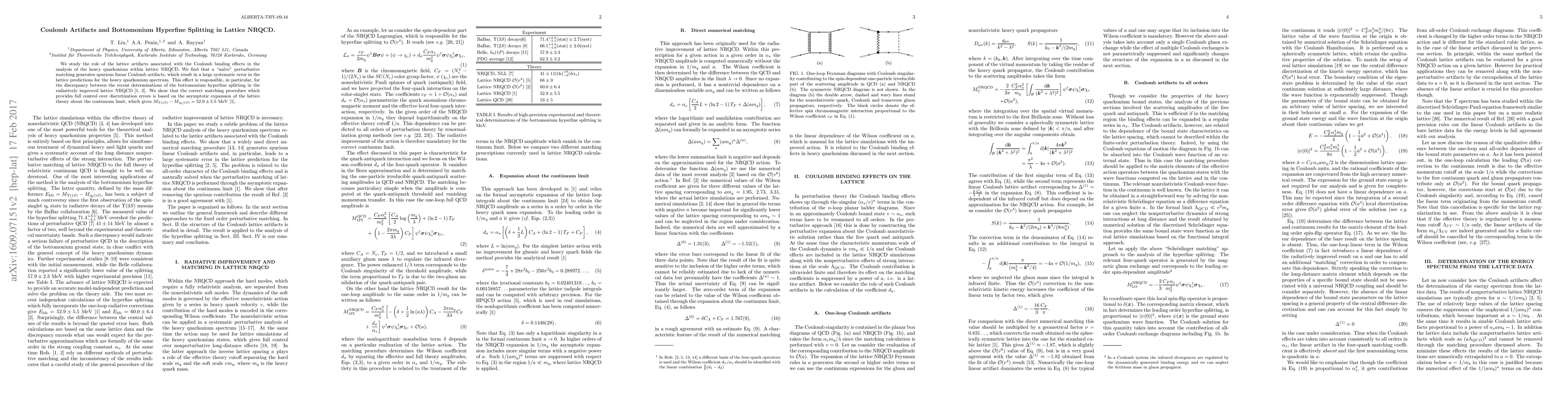 This paper investigates lattice artifacts from Coulomb binding in lattice NRQCD, identifying spurious linear Coulomb artifacts that cause systematic errors in heavy quarkonium spectrum predictions. It resolves discrepancies in bottomonium hyperfine splitting determinations by employing a correct matching procedure based on asymptotic expansion, yielding $M_{\Upsilon(1S)}-M_{\eta_b(1S)}=52.9\pm 5.5~{\rm MeV}$.