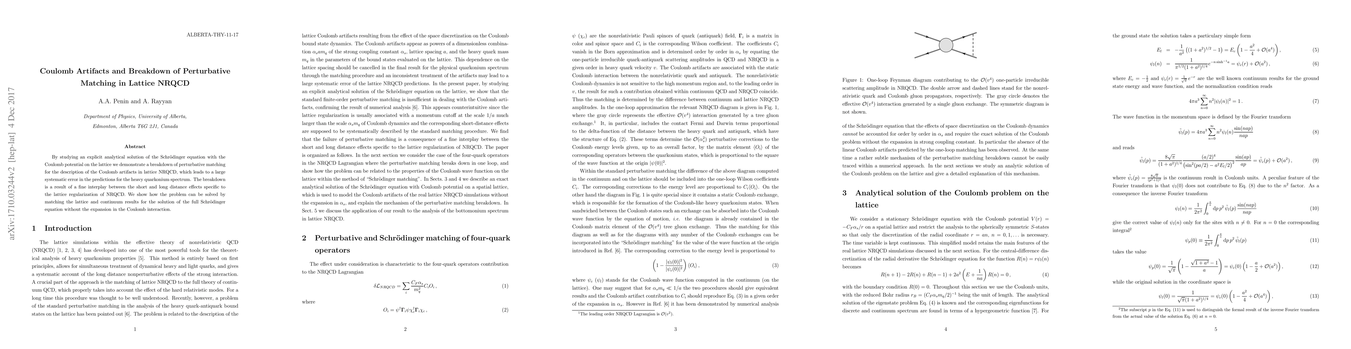By studying an explicit analytical solution of the Coulomb problem on the lattice we demonstrate a breakdown of perturbative matching for the description of the Coulomb artifacts in lattice NRQCD, which leads to a large systematic error in the predictions for the heavy quarkonium spectrum. The breakdown is a result of a fine interplay between the short and long distance effects specific to the lattice regularization of NRQCD. We show how the problem can be solved within the Schrodinger matching procedure.