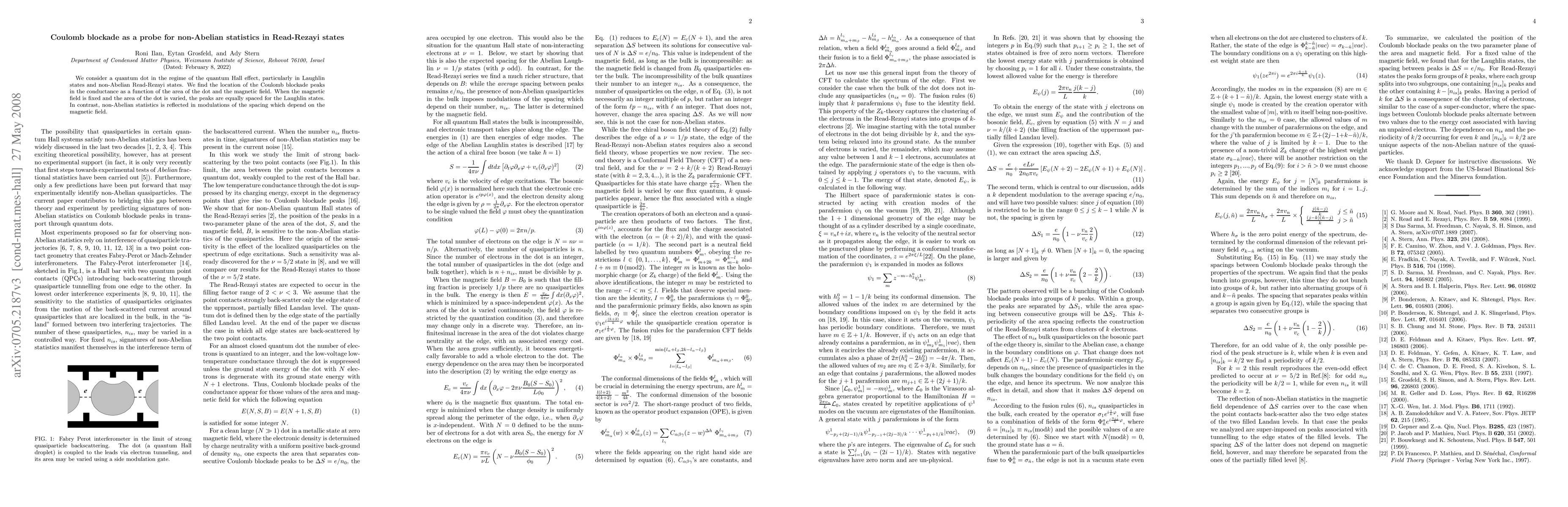 We consider a quantum dot in the regime of the quantum Hall effect, particularly in Laughlin states and non-Abelian Read-Rezayi states. We find the location of the Coulomb blockade peaks in the conductance as a function of the area of the dot and the magnetic field. When the magnetic field is fixed and the area of the dot is varied, the peaks are equally spaced for the Laughlin states. In contrast, non-Abelian statistics is reflected in modulations of the spacing which depend on the magnetic field.