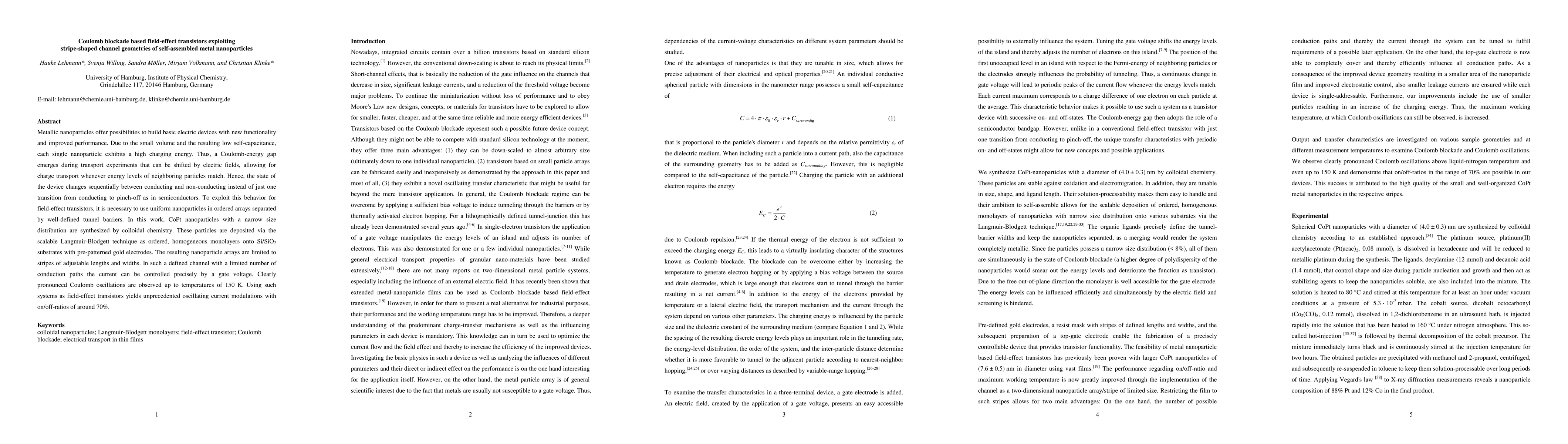 The devices exploit Coulomb blockade behavior, where electric fields control charge transport between particles separated by tunnel barriers.