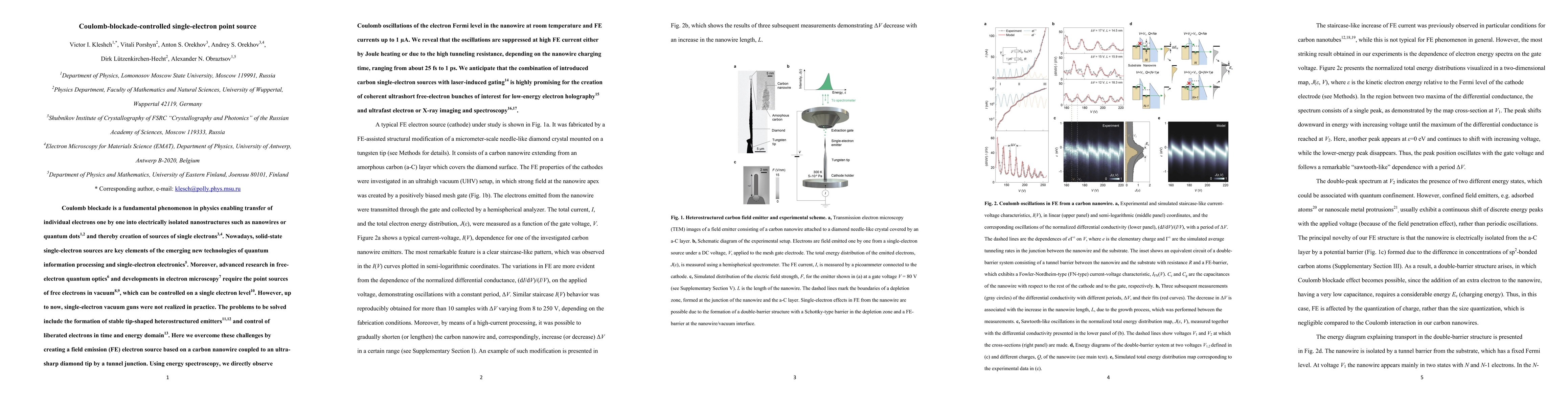 This paper reports the development of a Coulomb-blockade-controlled single-electron point source using a carbon nanowire coupled to a diamond tip via a tunnel junction. The study demonstrates stable field emission currents and observes Coulomb oscillations, paving the way for applications in quantum information processing and ultrafast electron imaging.