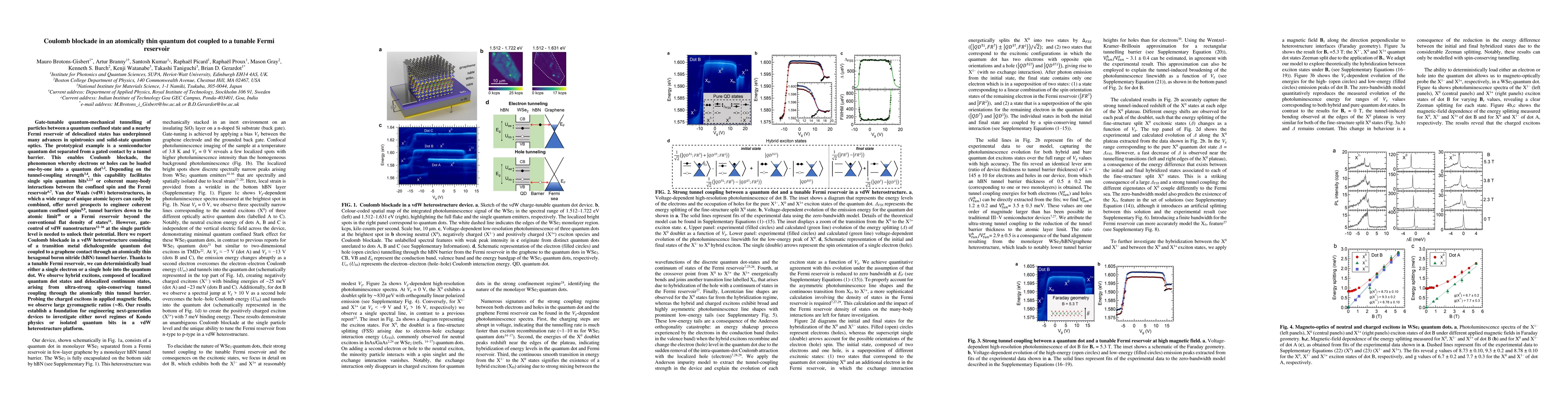 Gate-tunable quantum-mechanical tunnelling of particles between a quantum confined state and a nearby Fermi reservoir of delocalized states has underpinned many advances in spintronics and solid-state quantum optics. The prototypical example is a semiconductor quantum dot separated from a gated contact by a tunnel barrier. This enables Coulomb blockade, the phenomenon whereby electrons or holes can be loaded one-by-one into a quantum dot. Depending on the tunnel-coupling strength, this capability facilitates single spin quantum bits or coherent many-body interactions between the confined spin and the Fermi reservoir. Van der Waals (vdW) heterostructures, in which a wide range of unique atomic layers can easily be combined, offer novel prospects to engineer coherent quantum confined spins, tunnel barriers down to the atomic limit or a Fermi reservoir beyond the conventional flat density of states. However, gate-control of vdW nanostructures at the single particle level is needed to unlock their potential. Here we report Coulomb blockade in a vdW heterostructure consisting of a transition metal dichalcogenide quantum dot coupled to a graphene contact through an atomically thin hexagonal boron nitride (hBN) tunnel barrier. Thanks to a tunable Fermi reservoir, we can deterministically load either a single electron or a single hole into the quantum dot. We observe hybrid excitons, composed of localized quantum dot states and delocalized continuum states, arising from ultra-strong spin-conserving tunnel coupling through the atomically thin tunnel barrier. Probing the charged excitons in applied magnetic fields, we observe large gyromagnetic ratios (~8). Our results establish a foundation for engineering next-generation devices to investigate either novel regimes of Kondo physics or isolated quantum bits in a vdW heterostructure platform.