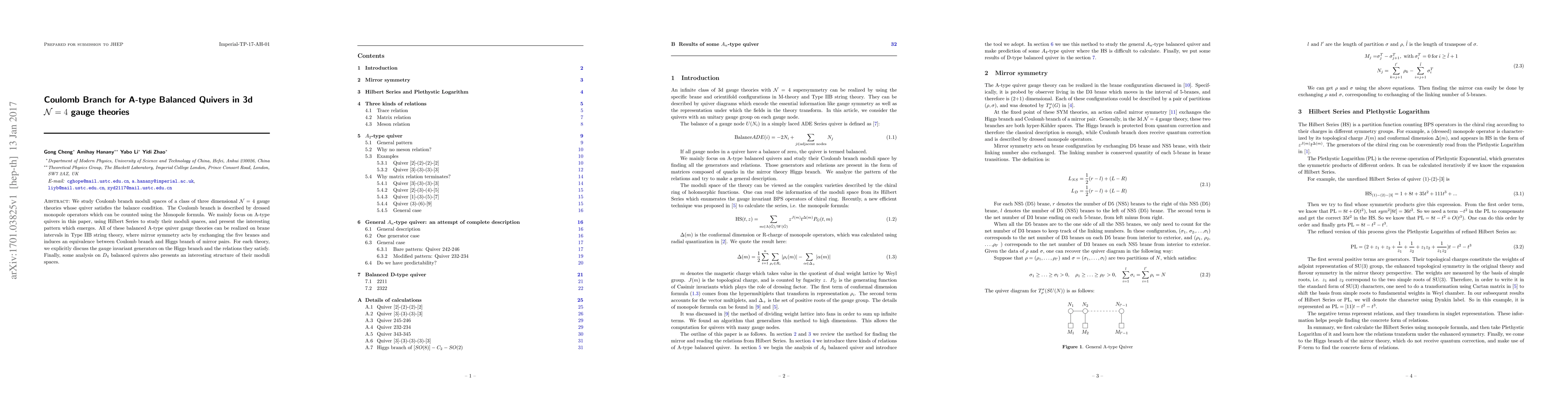 This paper investigates the Coulomb branch moduli spaces of 3d $\mathcal{N}=4$ gauge theories with A-type balanced quivers, employing Hilbert Series to analyze their structure. It reveals a pattern in these moduli spaces and explores their realization on brane intervals in Type IIB string theory, with an emphasis on mirror symmetry relations and gauge invariant generators on the Higgs branch.