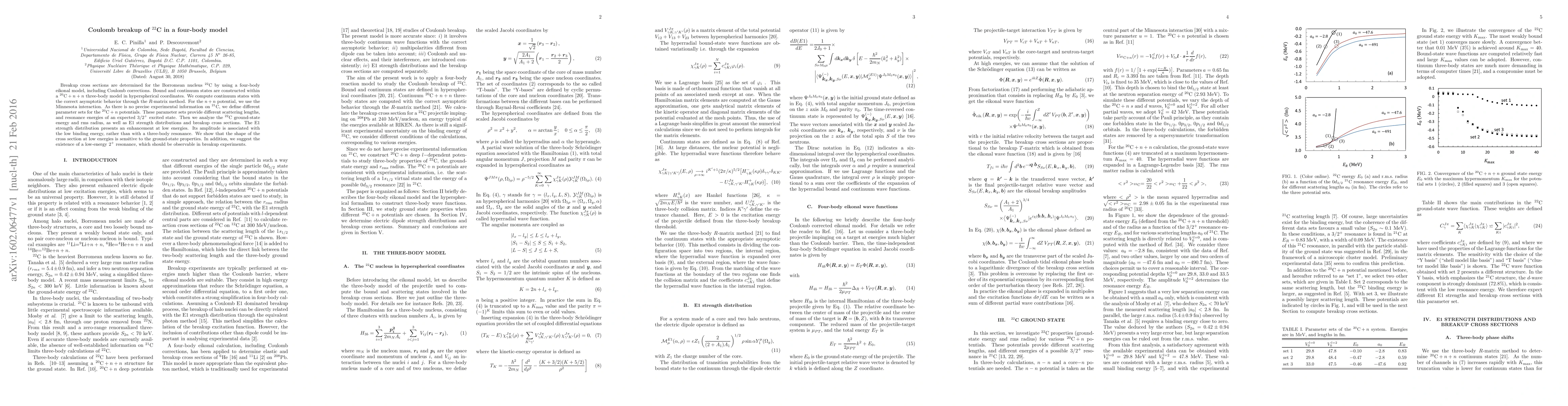 Breakup cross sections are determined for the Borromean nucleus 22C by using a four-body eikonal model, including Coulomb corrections. Bound and continuum states are constructed within a 20C + n + n three-body model in hyperspherical coordinates. We compute continuum states with the correct asymptotic behavior through the R-matrix method. For the n+ n potential, we use the Minnesota interaction. As there is no precise experimental information on 21C, we define different parameter sets for the 20C + n potentials. These parameter sets provide different scattering lengths, and resonance energies of an expected 3/2+ excited state. Then we analyze the 22C ground-state energy and rms radius, as well as E1 strength distributions and breakup cross sections. The E1 strength distribution presents an enhancement at low energies. Its amplitude is associated with the low binding energy, rather than with a three-body resonance. We show that the shape of the cross section at low energies is sensitive to the ground-state properties. In addition, we suggest the existence of a low-energy 2+ resonance, which should be observable in breakup experiments.