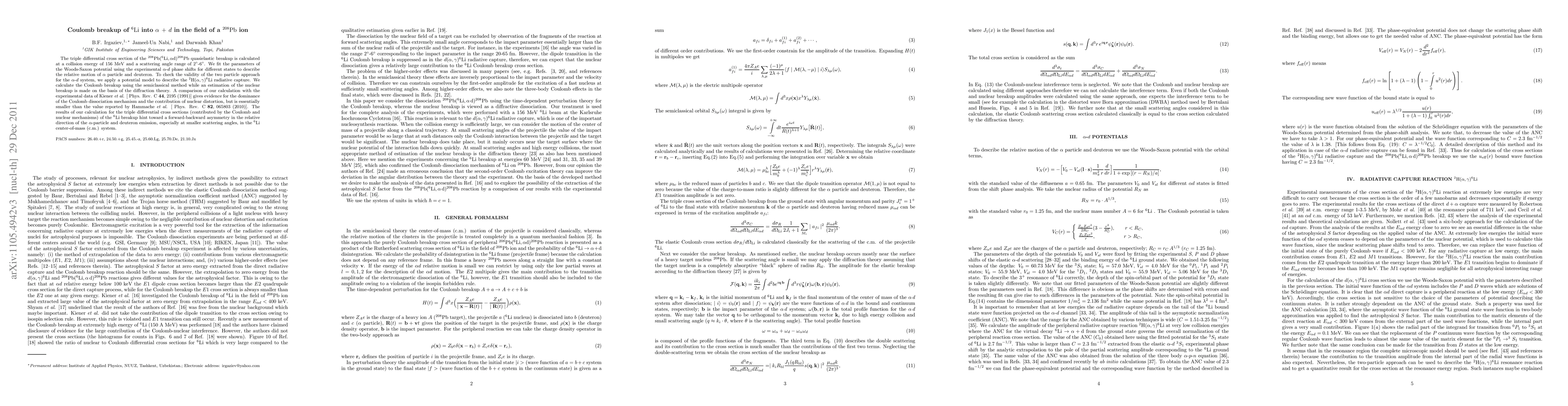 This study calculates the triple differential cross section of $^6 m{Li}$ breaking into $ m{d}$ and $ m{eta} in the field of $^{208} m{Pb}$ using a semiclassical method. The results show dominance of Coulomb dissociation for high relative energies, but significant nuclear distortion at low energies.