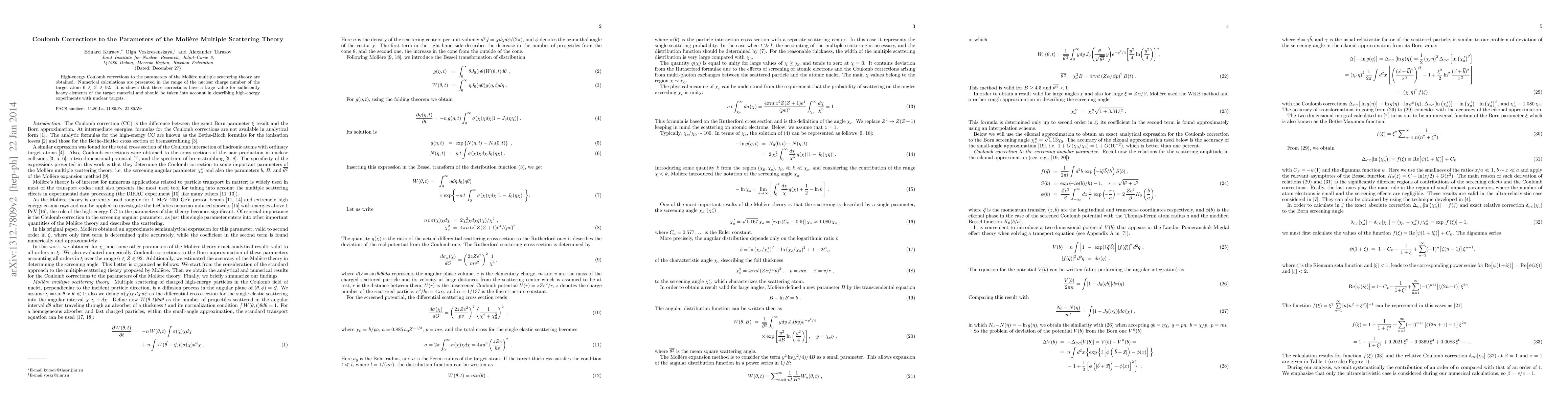 This paper derives high-energy Coulomb corrections to the parameters of the Moliere multiple scattering theory, with numerical results for target atoms with nuclear charge numbers ranging from 4 to 95. It emphasizes the significant impact of these corrections for heavy elements, stressing their necessity in high-energy experiments involving nuclear targets.