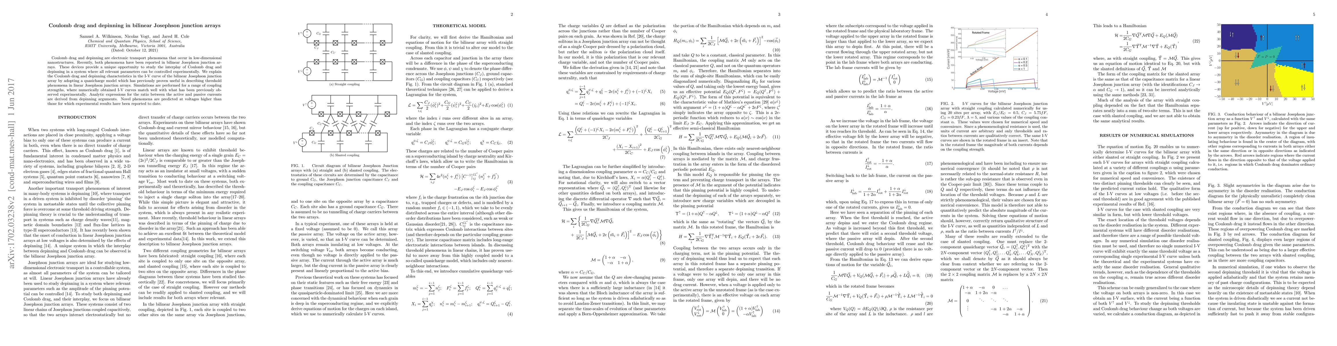 This paper investigates Coulomb drag and depinning in bilinear Josephson junction arrays, using a quasicharge model to explain their characteristics in the I-V curve. Simulations match experimental observations, and analytic expressions predict novel phenomena at higher voltages.