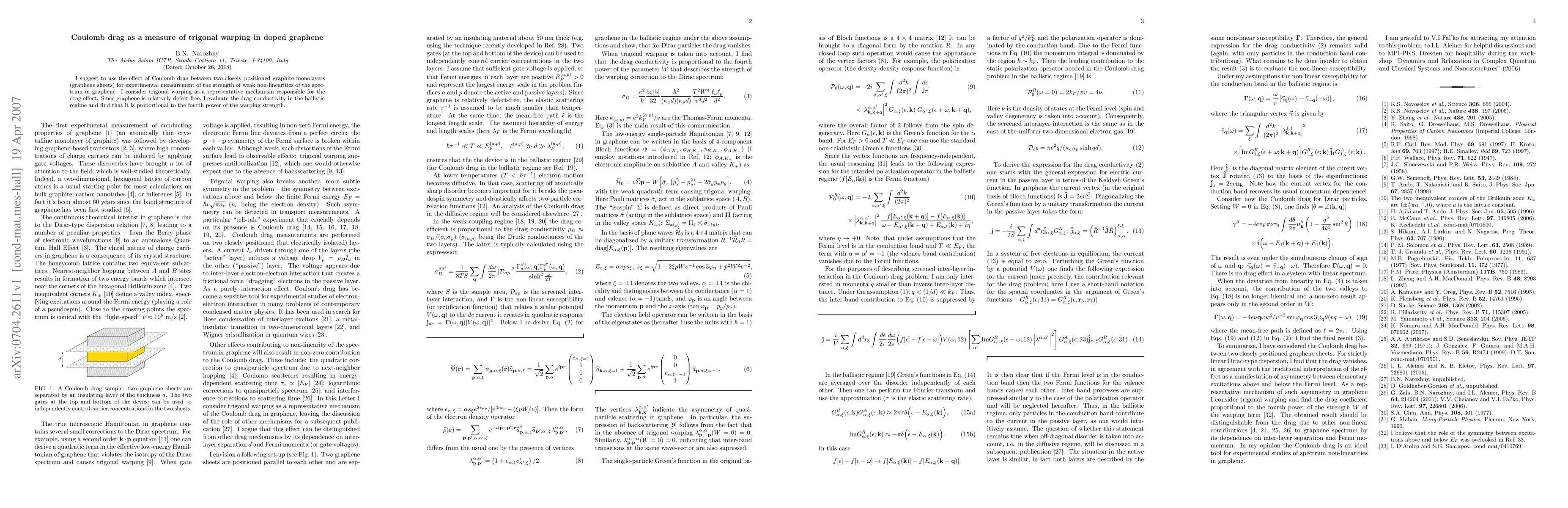 Summary: This paper proposes using Coulomb drag between two graphene sheets to measure trigonal warping's impact on the spectrum, finding that drag conductivity in the ballistic regime is proportional to the fourth power of the warping strength. This method offers a precise way to quantify weak non-linearities in defect-free graphene.