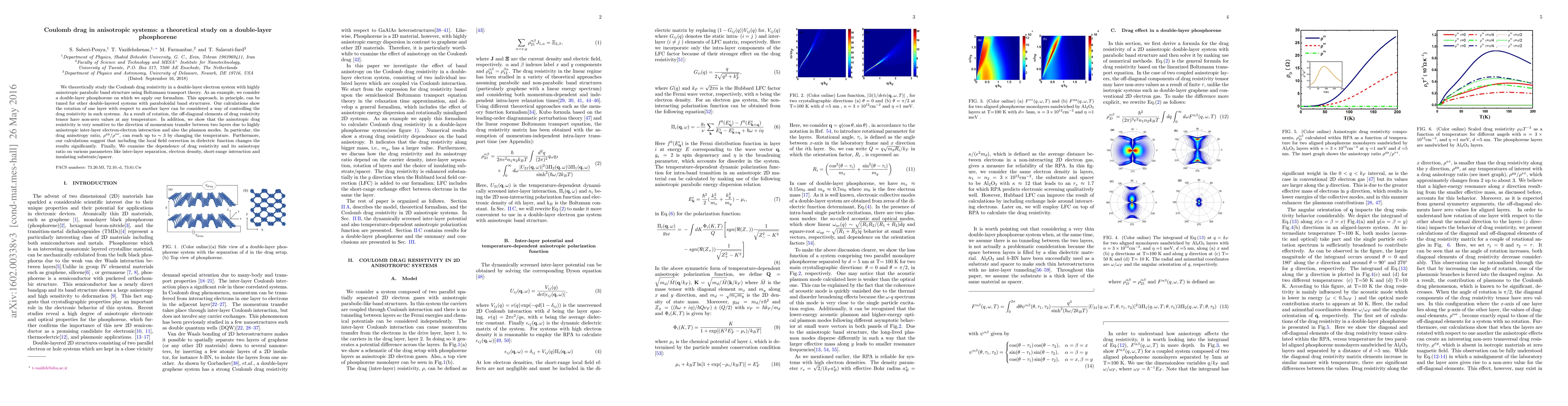 We theoretically study the Coulomb drag resistivity in a double-layer electron system with highly anisotropic parabolic band structure using Boltzmann transport theory. As an example, we consider a double-layer phosphorene on which we apply our formalism. This approach, in principle, can be tuned for other double-layered systems with paraboloidal band structures. Our calculations show the rotation of one layer with respect to another layer can be considered a way of controlling the drag resistivity in such systems. As a result of rotation, the off-diagonal elements of drag resistivity tensor have non-zero values at any temperature. In addition, we show that the anisotropic drag resistivity is very sensitive to the direction of momentum transfer between two layers due to highly anisotropic inter-layer electron-electron interaction and also the plasmon modes. In particular, the drag anisotropy ratio, \r{ho}yy/\r{ho}xx, can reach up to ~ 3 by changing the temperature. Furthermore,our calculations suggest that including the local field correction in dielectric function changes the results significantly. Finally, We examine the dependence of drag resistivity and its anisotropy ratio on various parameters like inter-layer separation, electron density, short-range interaction and insulating substrate/spacer.