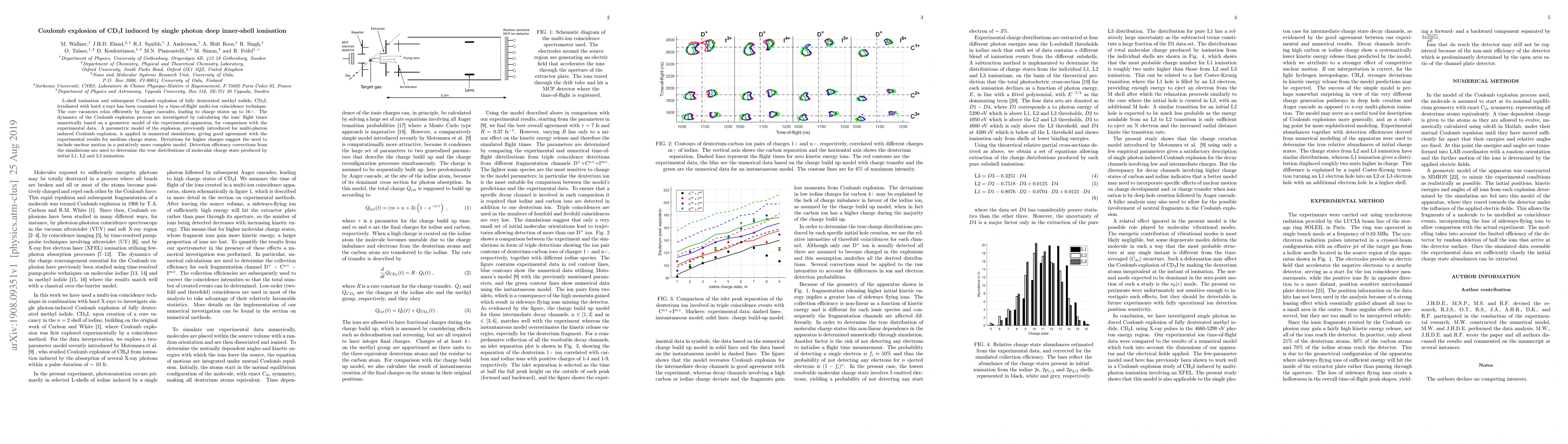 Researchers studied how fully deuterated methyl iodide (CD3I) reacts when hit with high-energy x-rays, finding that it can explode into different ions with varying charges. The study used a combination of experiments and computer simulations to understand the process.