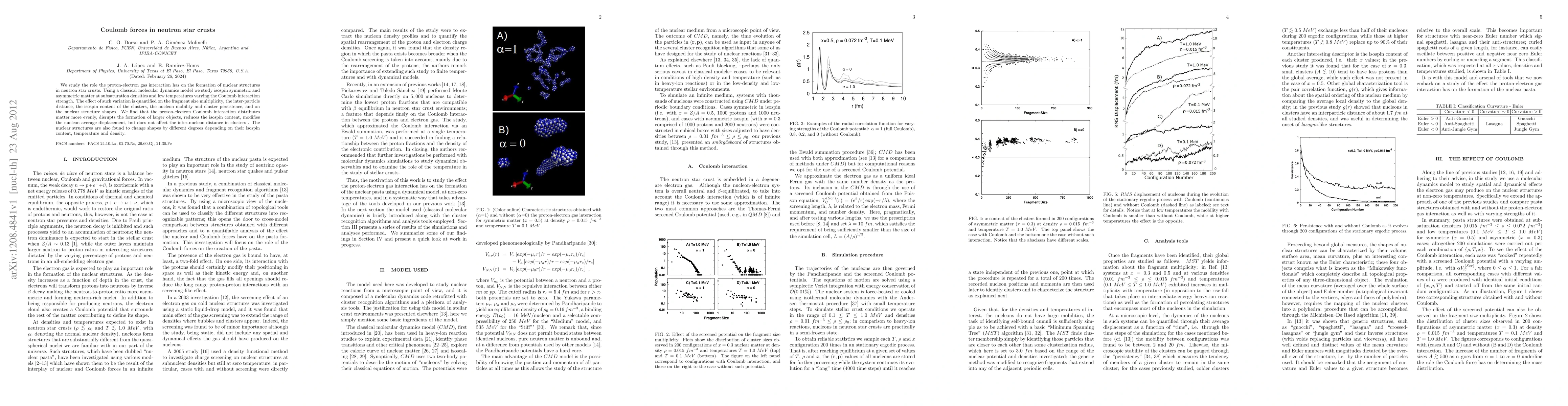We study the role the proton-electron gas interaction has on the formation of nuclear structures in neutron star crusts. Using a classical molecular dynamics model we study isospin symmetric and asymmetric matter at subsaturation densities and low temperatures varying the Coulomb interaction strength. The effect of such variation is quantified on the fragment size multiplicity, the inter-particle distance, the isospin content of the clusters, the nucleon mobility and cluster persistence, and on the nuclear structure shapes. We find that the proton-electron Coulomb interaction distributes matter more evenly, disrupts the formation of larger objects, reduces the isospin content, modifies the nucleon average displacement, but does not affect the inter-nucleon distance in clusters . The nuclear structures are also found to change shapes by different degrees depending on their isospin content, temperature and density.