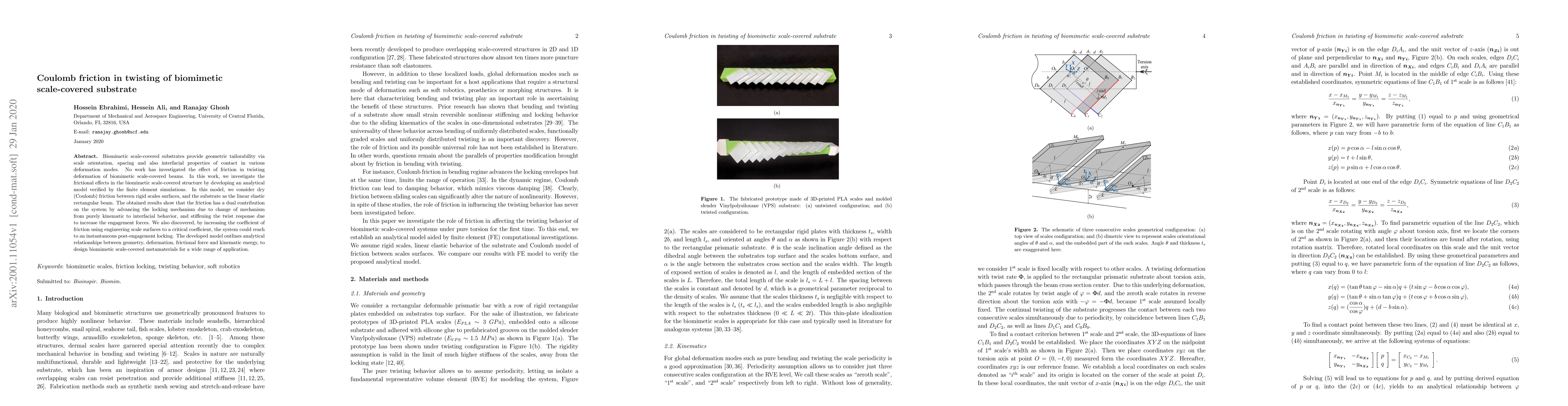 This paper investigates the Coulomb friction effects in twisting biomimetic scale-covered beams, developing an analytical model verified by finite element simulations. The study reveals that friction enhances both the locking mechanism and the twist response stiffness, leading to potential applications in designing advanced metamaterials.