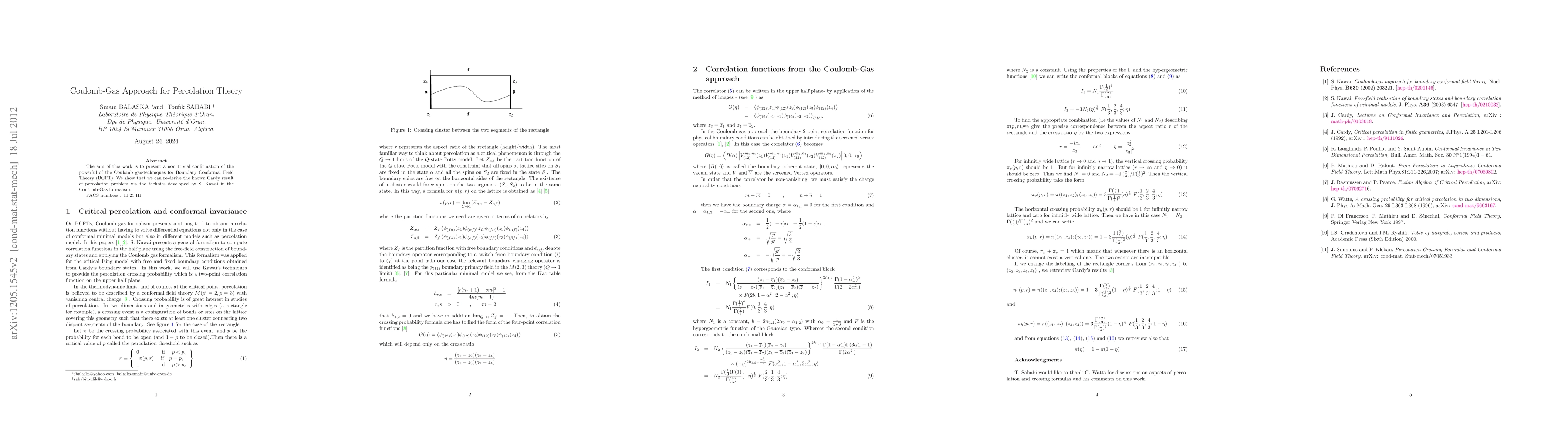The aim of this work is to present a non trivial confirmation of the powerful of the Coulomb gas-techniques for Boundary Conformal Field Theory (BCFT). We show that we can re-derive the known Cardy result of percolation problem via the technics developed by S. Kawai in the Coulomb-Gas formalism.