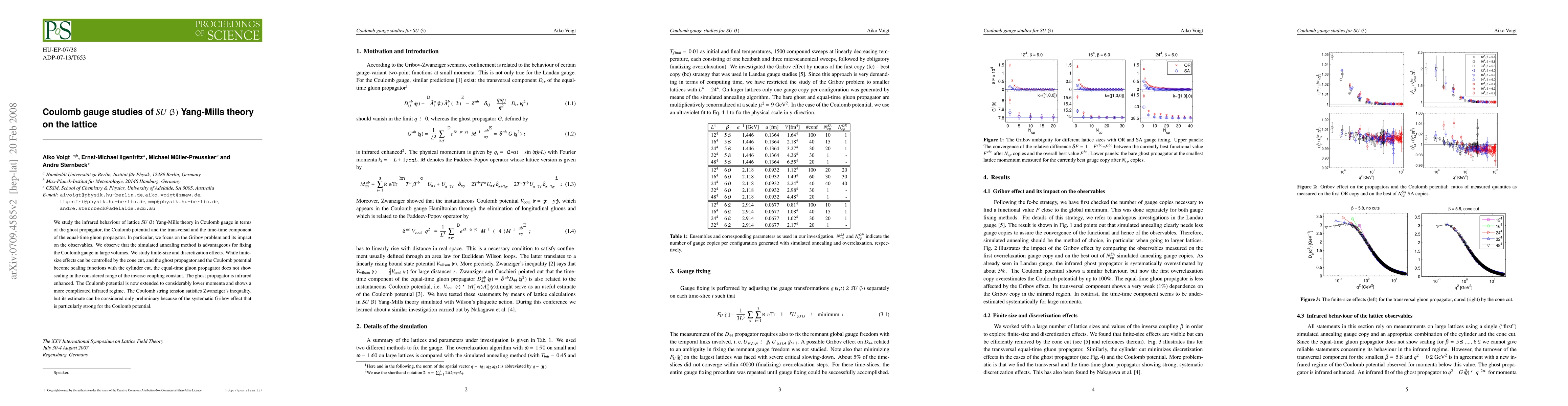 This paper investigates the infrared behavior of lattice SU(3) Yang-Mills theory in Coulomb gauge, focusing on the ghost propagator, Coulomb potential, and gluon propagator. The study highlights the advantages of the simulated annealing method for gauge fixing and discusses finite size and discretization effects, noting that the equal-time gluon propagator does not scale well. The ghost propagator exhibits infrared enhancement, and the Coulomb potential shows a more complex infrared regime.