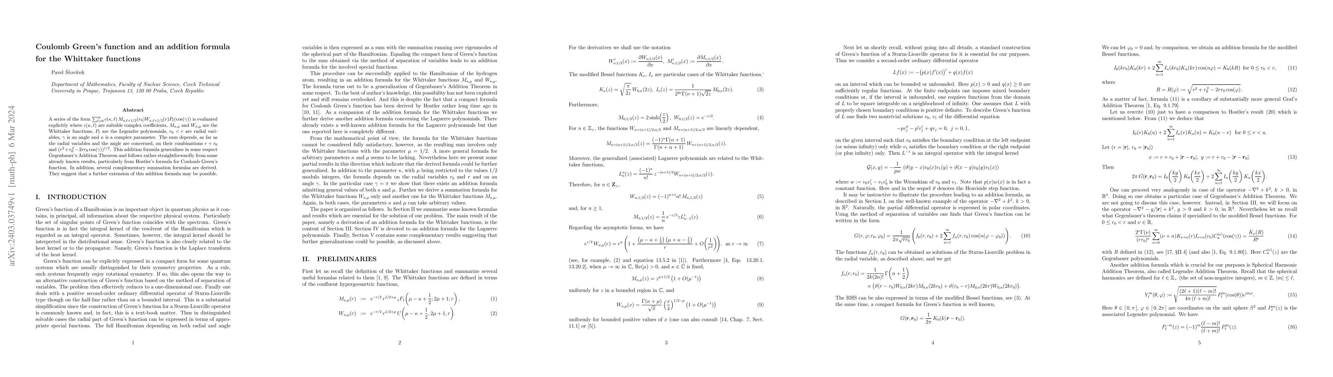 coefficients, $M_{\kappa,\mu}$ and $W_{\kappa,\mu}$ are the Whittaker