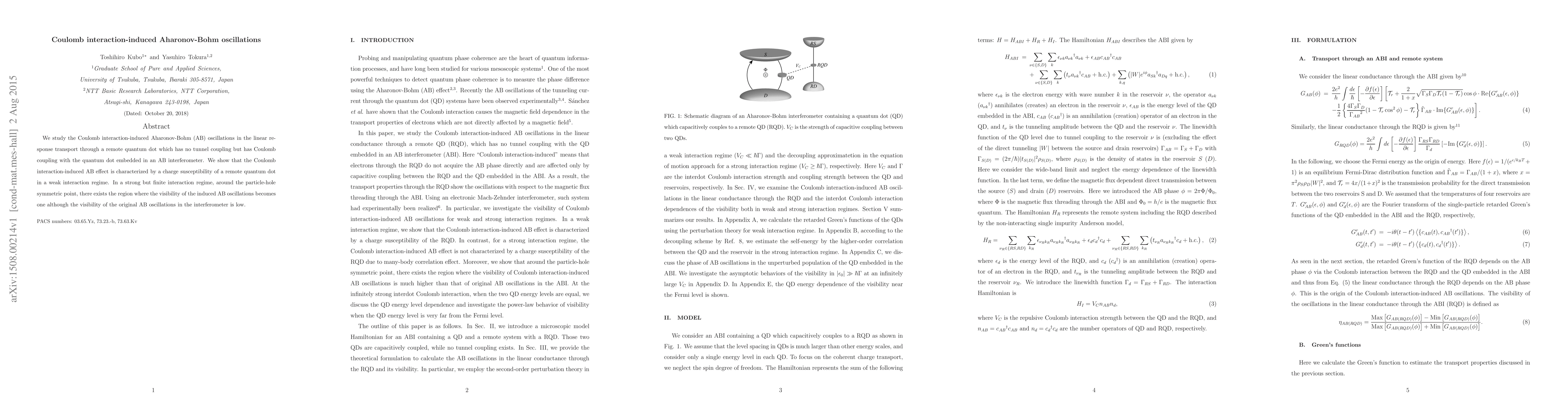 This paper explores Coulomb interaction-induced Aharonov-Bohm oscillations in transport through a remote quantum dot without direct coupling but with Coulomb coupling to a dot in an AB interferometer. It reveals that the effect is characterized by the remote dot's charge susceptibility and shows enhanced visibility of induced AB oscillations near the particle-hole symmetric point.