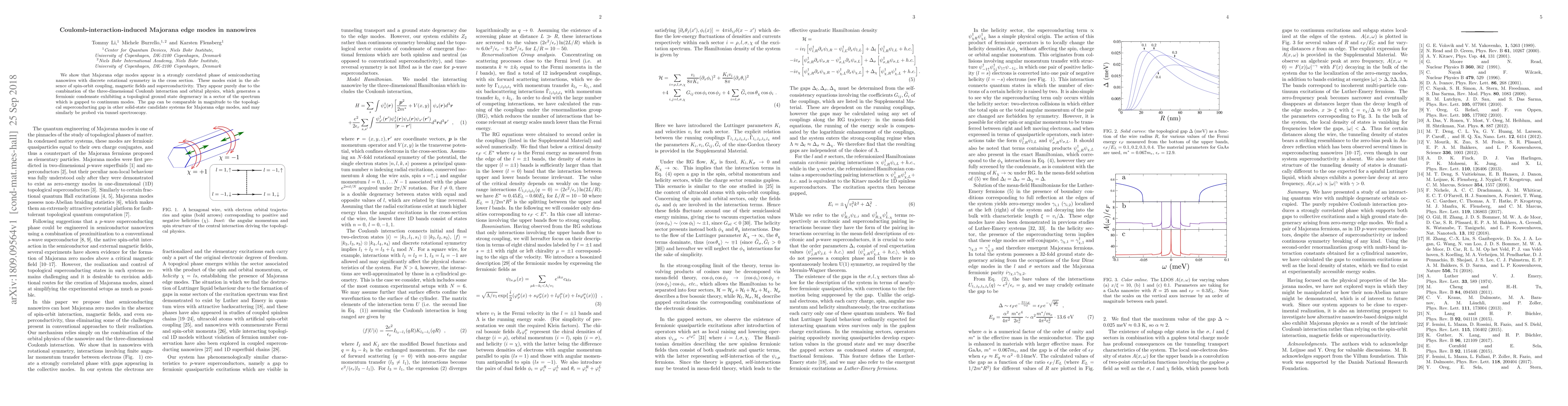 This paper demonstrates that Majorana edge modes emerge in strongly correlated semiconducting nanowires without spin-orbit coupling, magnetic fields, or superconductivity, driven solely by three-dimensional Coulomb interactions and orbital effects, potentially probed via tunnel spectroscopy. These modes exhibit a topological ground state degeneracy comparable to other Majorana systems.