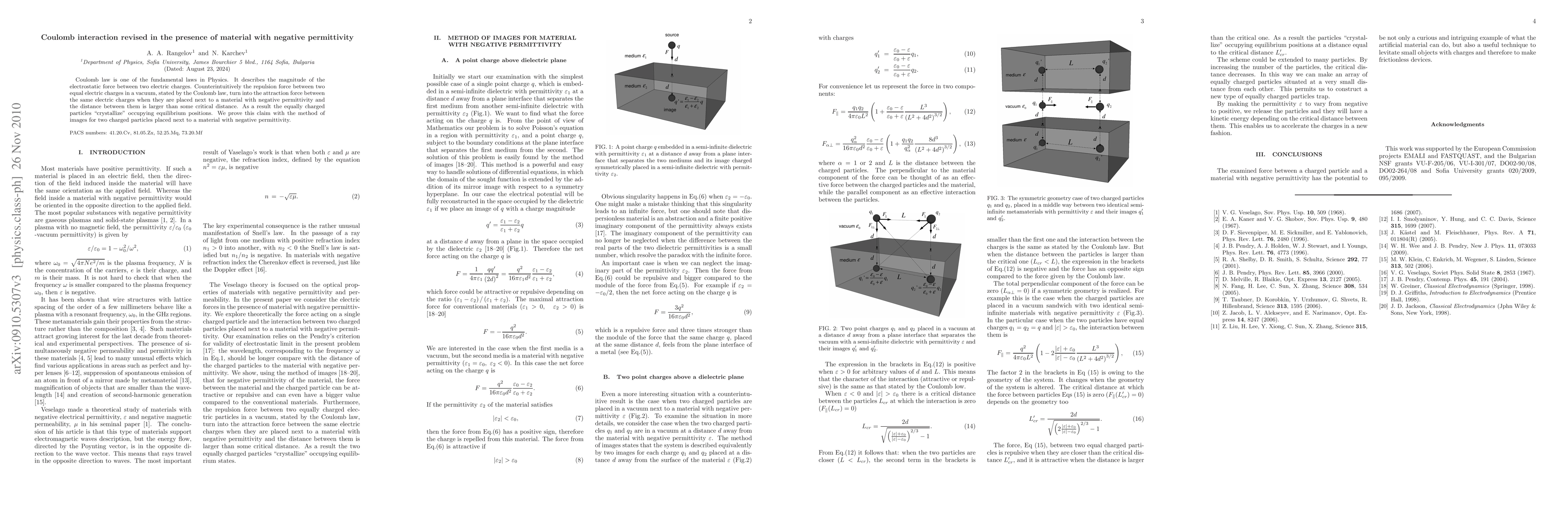 Researchers prove that equal electric charges attract each other when placed near a material with negative permittivity, contrary to the traditional Coulomb law.