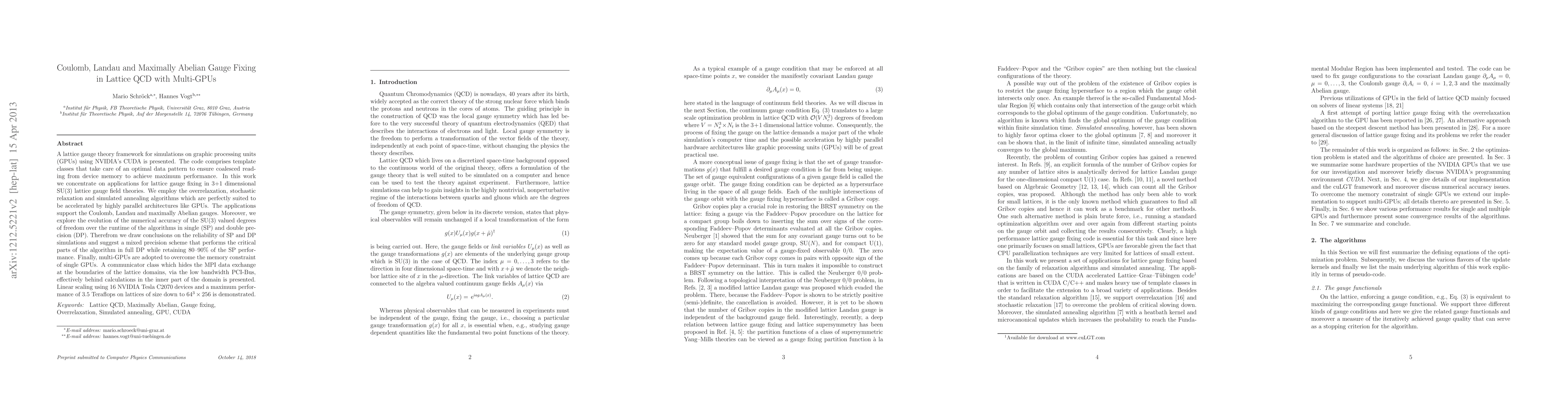 This paper presents a lattice QCD framework for GPU-based simulations using CUDA, focusing on Coulomb, Landau, and maximally Abelian gauge fixing. It explores the use of overrelaxation, stochastic relaxation, and simulated annealing algorithms, and evaluates the numerical accuracy in single vs. double precision, proposing a mixed precision scheme for optimal performance. Multi-GPU support is also implemented to address memory constraints.