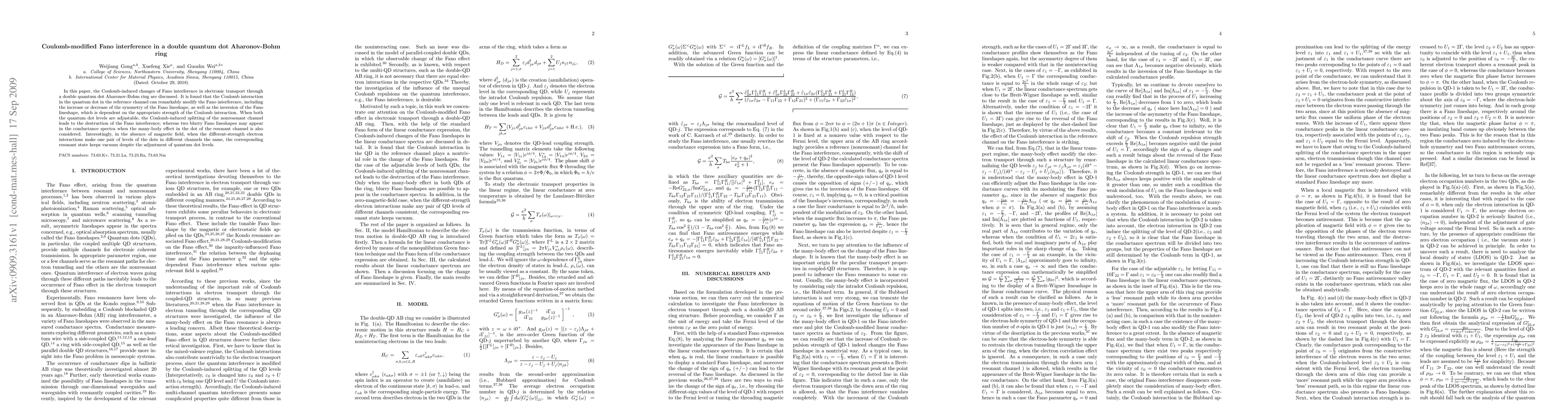 This paper investigates Coulomb-induced modifications to Fano interference in electronic transport through a double quantum dot Aharonov-Bohm ring, revealing significant changes in Fano lineshape symmetry and inversion depending on Coulomb interaction strength, and discussing the effects of adjustable quantum dot levels and many-body interactions.