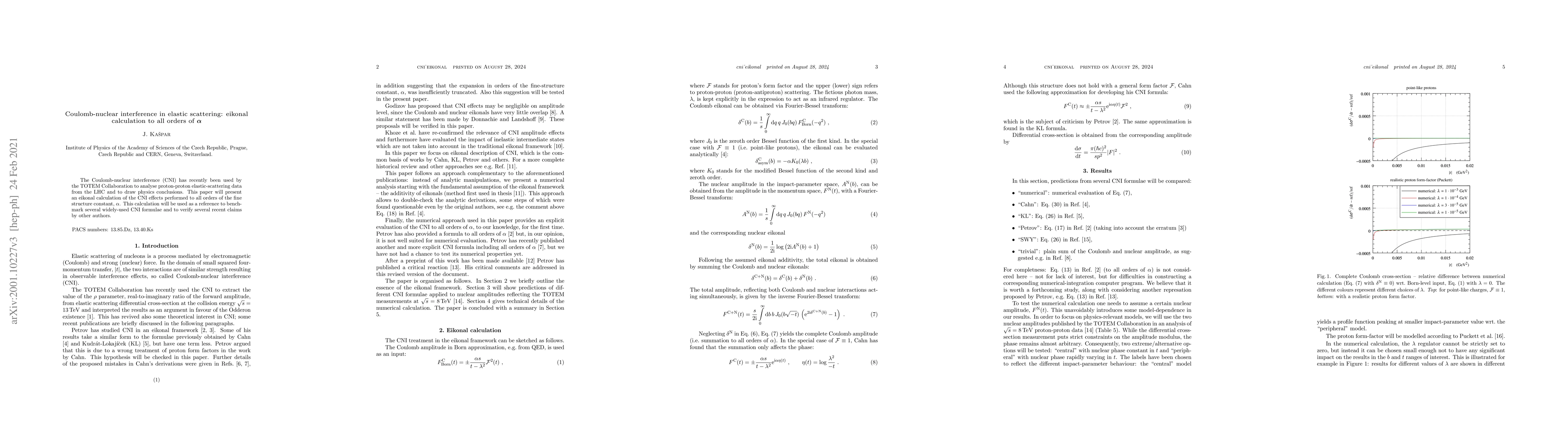 The Coulomb-nuclear interference (CNI) has recently been used by the TOTEM Collaboration to analyse proton-proton elastic-scattering data from the LHC and to draw physics conclusions. This paper will present an eikonal calculation of the CNI effects performed to all orders of the fine structure constant, $\alpha$. This calculation will be used as a reference to benchmark several widely-used CNI formulae and to verify several recent claims by other authors.