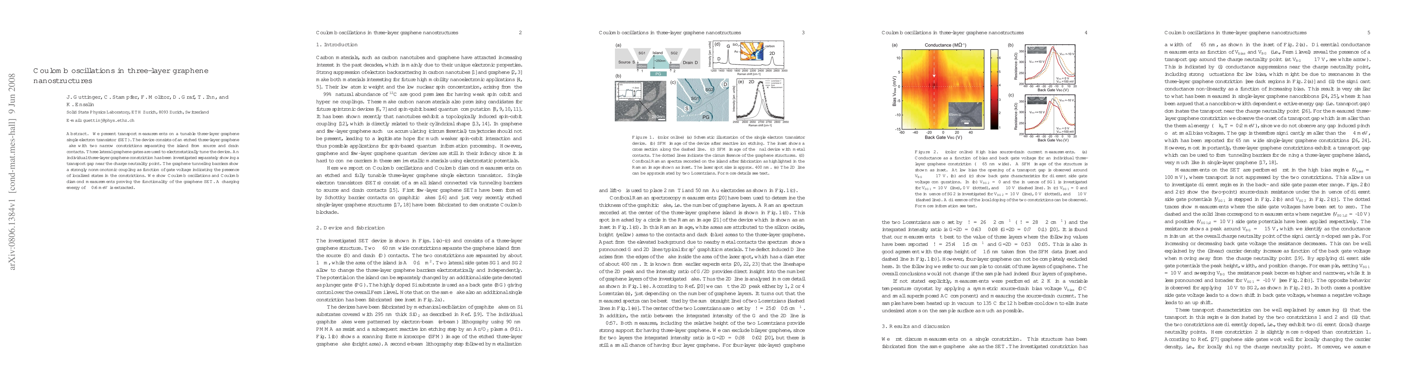 This paper reports on transport measurements in a tunable three-layer graphene single electron transistor (SET), demonstrating Coulomb oscillations and a charging energy of approximately 0.6 meV, indicating the presence of localized states in graphene constrictions. The study confirms the functionality of the graphene SET through Coulomb diamond measurements.