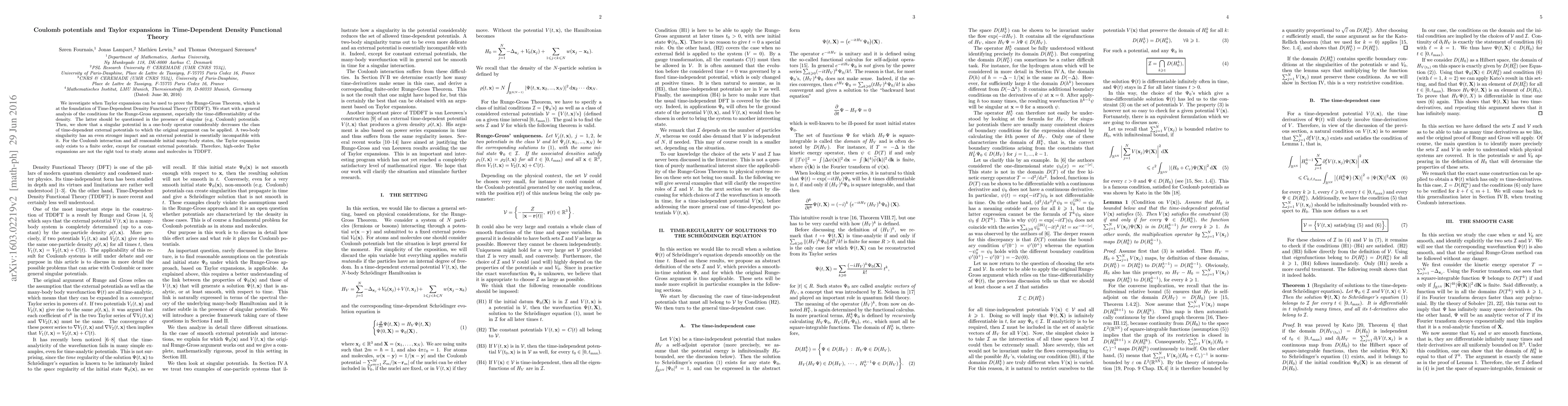Summary: This paper examines the applicability of Taylor expansions to prove the Runge-Gross Theorem in Time-Dependent Density Functional Theory (TDDFT), particularly in the presence of singular Coulomb potentials. It finds that singular potentials restrict the range of time-dependent external potentials to which the theorem can be applied, and thus high-order Taylor expansions are unsuitable for studying atoms and molecules under TDDFT.