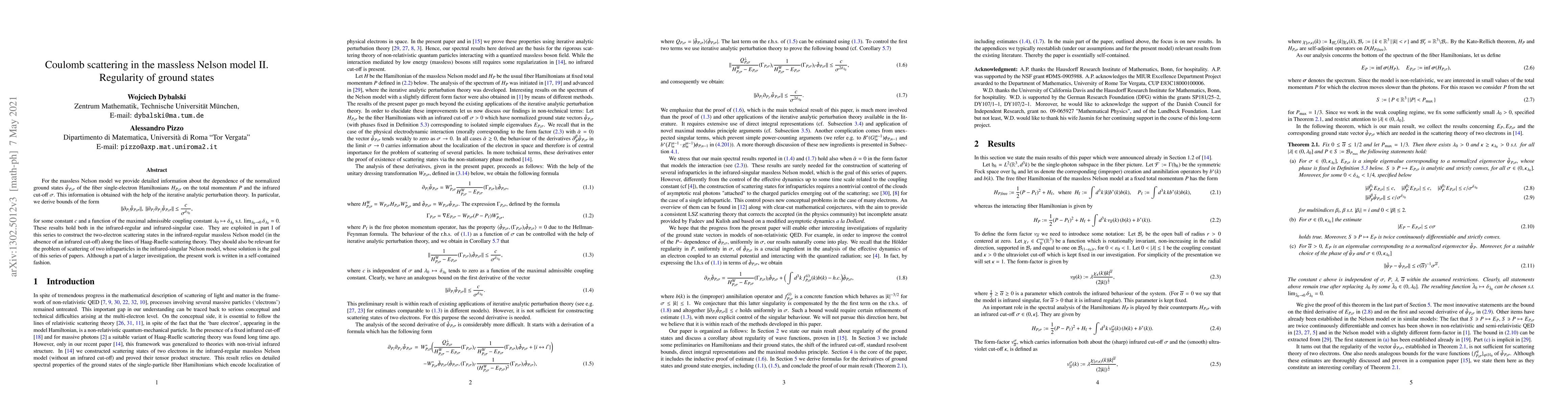For the massless Nelson model we provide detailed information about the dependence of the normalized ground states $\check{\psi}_{P,\sigma}$ of the fiber single-electron Hamiltonians $H_{P,\sigma}$ on the total momentum $P$ and the infrared cut-off $\sigma$. This information is obtained with the help of the iterative analytic perturbation theory. In particular, we derive bounds of the form \[ \|\partial_{P_i}\check{\psi}_{P,\sigma}\|,\ \| \partial_{P_i} \partial_{P_j}\check{\psi}_{P,\sigma} \|\leq \frac{c}{\sigma^{\delta_{\lambda_0}}}, \] for some constant $c$ and a function of the maximal admissible coupling constant $\lambda_0\mapsto \delta_{\lambda_0}$ s.t. $\lim_{\lambda_0\to 0}\delta_{\lambda_0}=0$. These results hold both in the infrared-regular and infrared-singular case. They are exploited in part I of this series to construct the two-electron scattering states in the infrared-regular massless Nelson model (in the absence of an infrared cut-off) along the lines of Haag-Ruelle scattering theory. They should also be relevant for the problem of scattering of two infraparticles in the infrared-singular Nelson model, whose solution is the goal of this series of papers. Although a part of a larger investigation, the present work is written in a self-contained fashion.