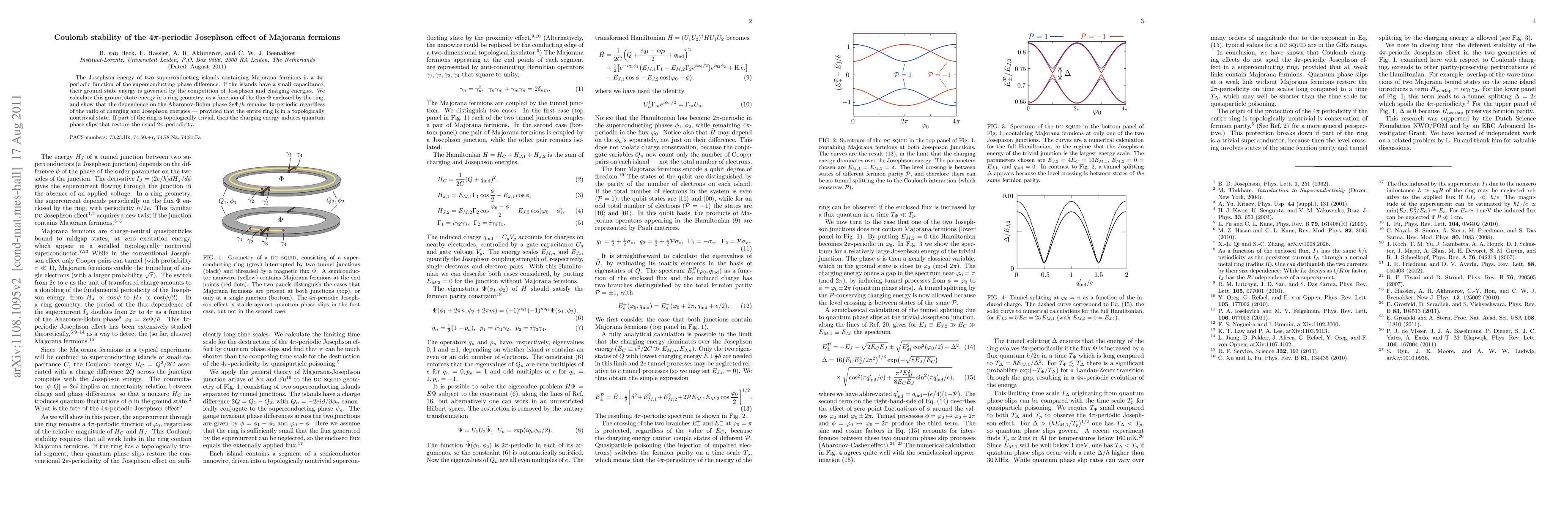The Josephson energy of two superconducting islands containing Majorana fermions is a 4\pi-periodic function of the superconducting phase difference. If the islands have a small capacitance, their ground state energy is governed by the competition of Josephson and charging energies. We calculate this ground state energy in a ring geometry, as a function of the flux -\Phi- enclosed by the ring, and show that the dependence on the Aharonov-Bohm phase 2e\Phi/\hbar remains 4\pi-periodic regardless of the ratio of charging and Josephson energies - provided that the entire ring is in a topologically nontrivial state. If part of the ring is topologically trivial, then the charging energy induces quantum phase slips that restore the usual 2\pi-periodicity.