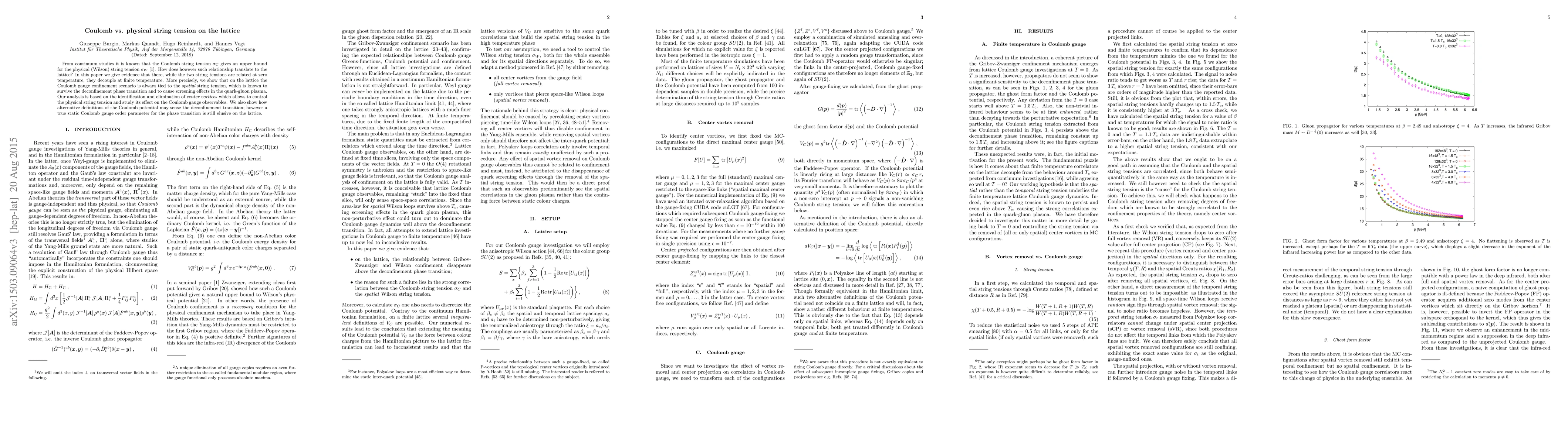 This paper investigates the relationship between Coulomb and physical string tensions on the lattice, finding that while they are related at zero temperature, they decouple at finite temperature. The study reveals that the Coulomb gauge confinement scenario is linked to the spatial string tension, which persists even through the deconfinement phase transition.