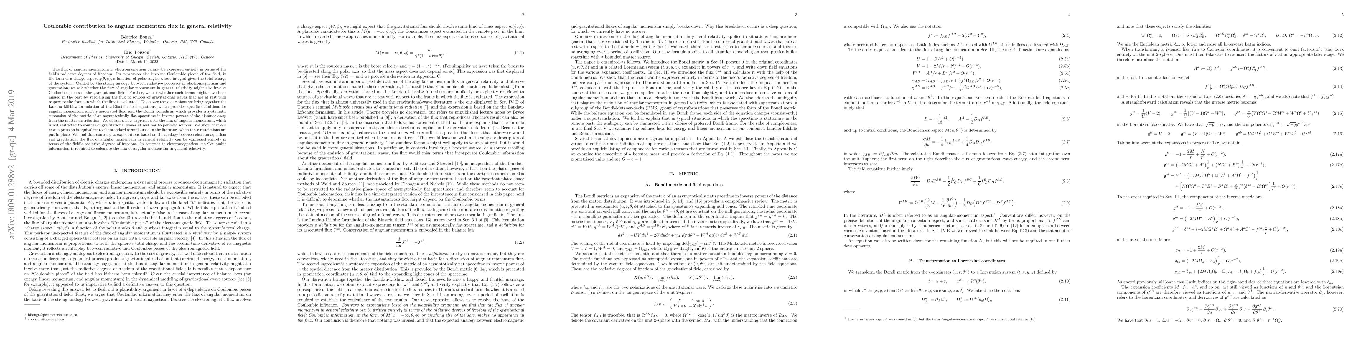 This paper investigates whether the flux of angular momentum in general relativity includes Coulombic contributions, akin to electromagnetism. It finds that, contrary to expectations, the flux can be expressed entirely through radiative degrees of freedom, without requiring Coulombic information from the gravitational field.