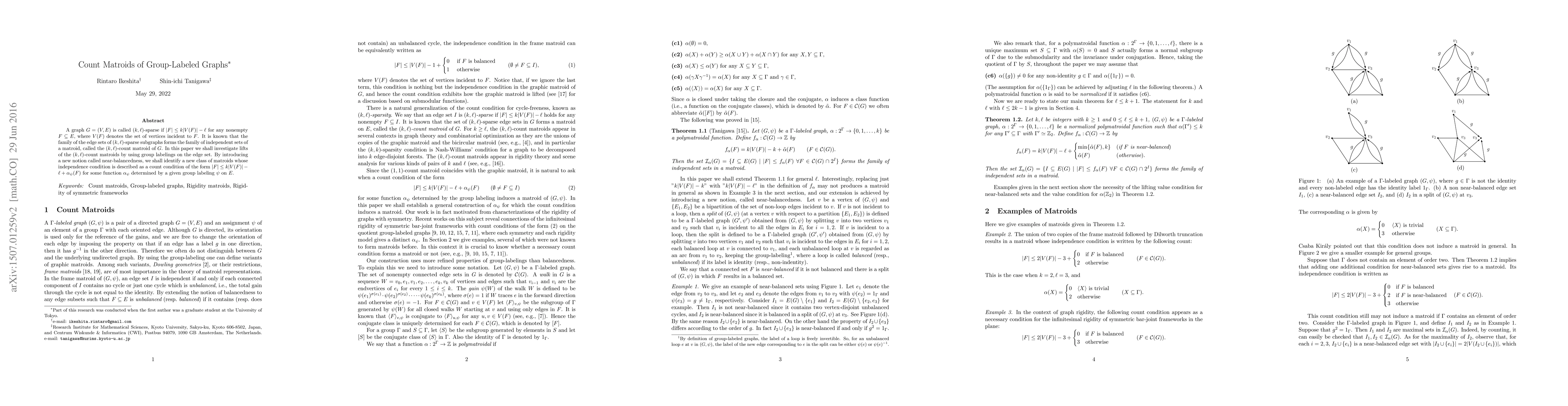 This paper investigates $(k,\ell)$-count matroids derived from $(k,\ell)$-sparse subgraphs of a graph $G$ and explores their lifts via group labelings on $E$. It introduces the concept of near-balancedness to define a new class of matroids characterized by a count condition $|F|\leq k|V(F)|-\ell +\alpha_{\psi}(F)$ for a function $\alpha_{\psi}$ linked to a group labeling $\psi$.