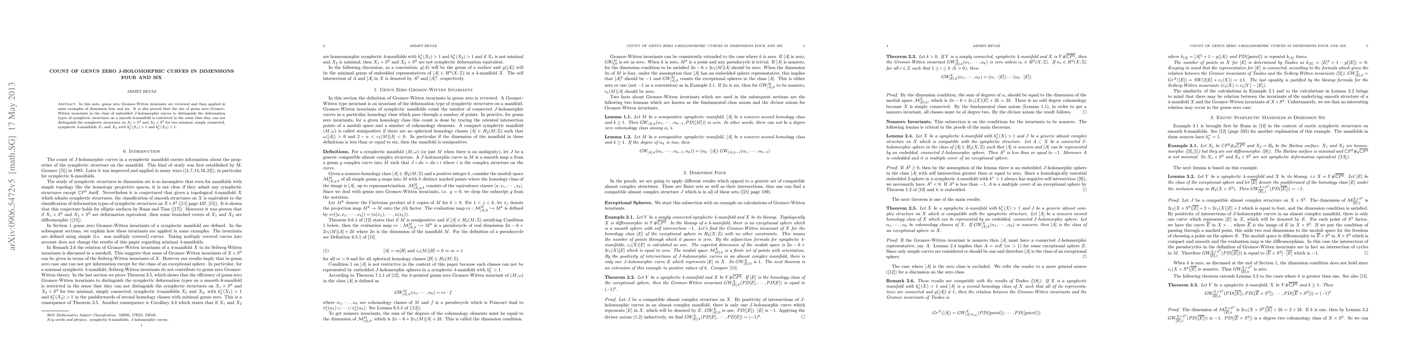 In this note, genus zero Gromov-Witten invariants are reviewed and then applied in some examples of dimension four and six. It is also proved that the use of genus zero Gromov-Witten invariants in the class of embedded $J$-holomorphic curves to distinguish the deformation types of symplectic structures on a smooth $6$-manifold is restricted in the sense that they can not distinguish the symplectic structures on $X_1\times S^2$ and $X_2\times S^2$ for two minimal, simply connected, symplectic $4$-manifolds $X_1$ and $X_2$ with $b_2^+(X_1)>1$ and $b_2^+(X_2)>1$.
