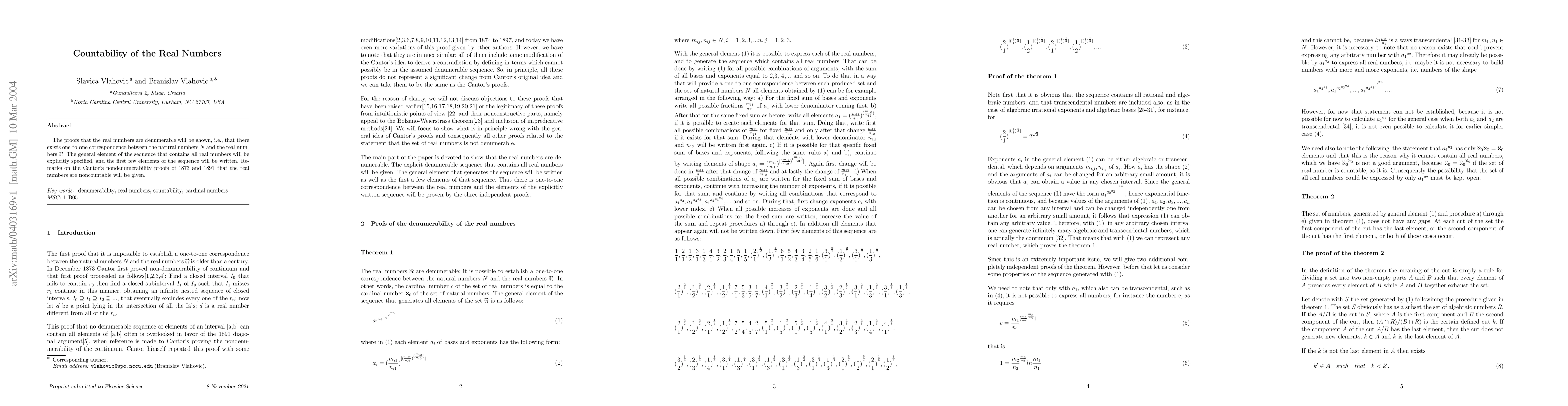 This research is important as it confirms the countability of the real numbers, resolving a long-standing debate.