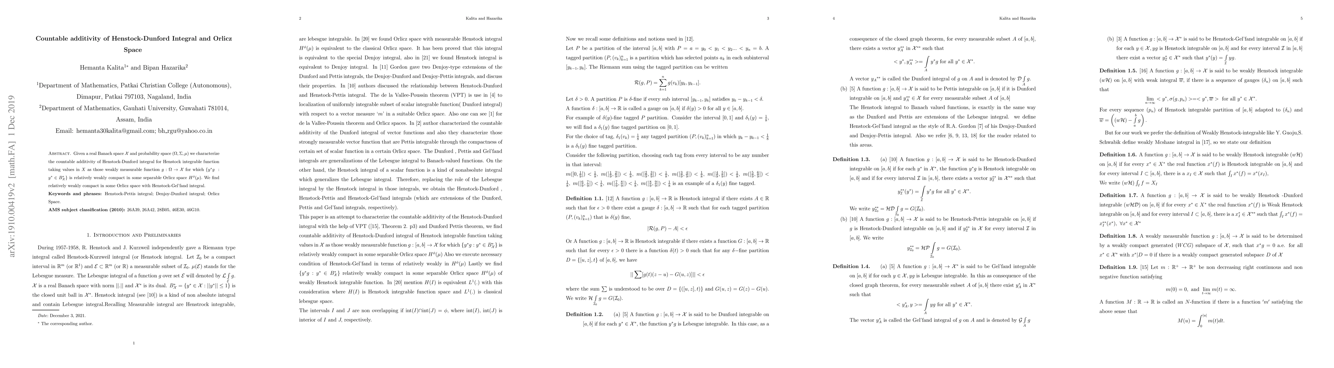 Given a real Banach space $\mathcal{X}$ and probability space $(\Omega, \Sigma, \mu)$ we characterize the countable additivity of Henstock-Dunford integral for Henstock integrable function taking values in $X$ as those weakly measurable function $ g: \Omega \to \mathcal{X} $ for which $\{y^*g~: y^* \in B_\mathcal{X}^* \} $ is relatively weakly compact in some separable Orlicz space $ \mathcal{L}^{\overline{\phi}}(\mu) .$ We find relatively weakly compact in some Orlicz space with Henstock-Gel'fand integral.