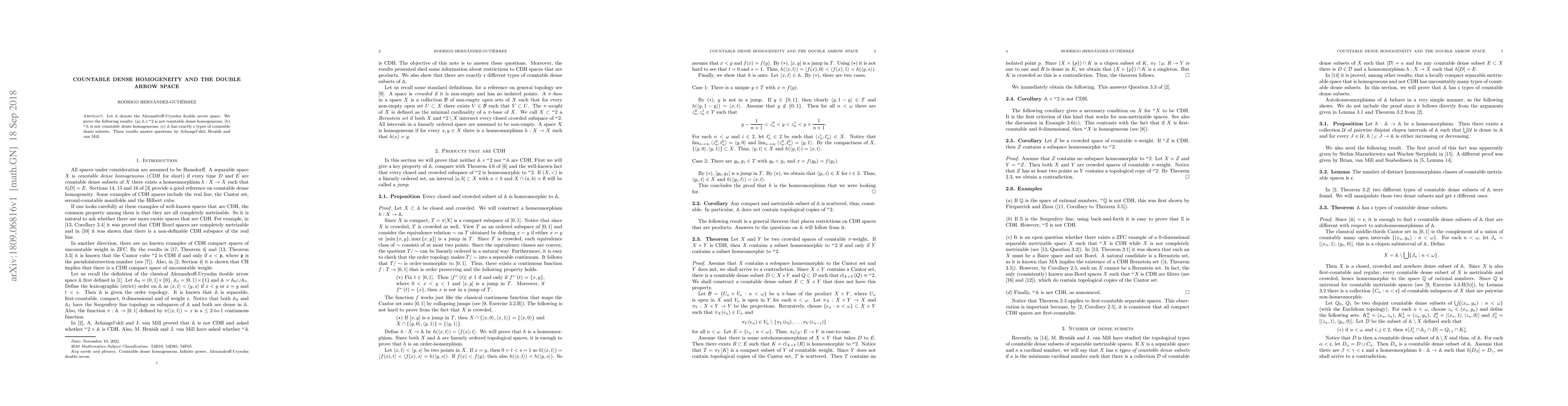 Let $\mathbb{A}$ denote the Alexandroff-Urysohn double arrow space. We prove the following results: (a) $\mathbb{A}\times{}^\omega{2}$ is not countable dense homogeneous; (b) ${}^{\omega}{\mathbb{A}}$ is not countable dense homogeneous; (c) $\mathbb{A}$ has exactly $\mathfrak{c}$ types of countable dense subsets. These results answer questions by Arhangel'ski\u\i, Hru\v{s}\'ak and van Mill.