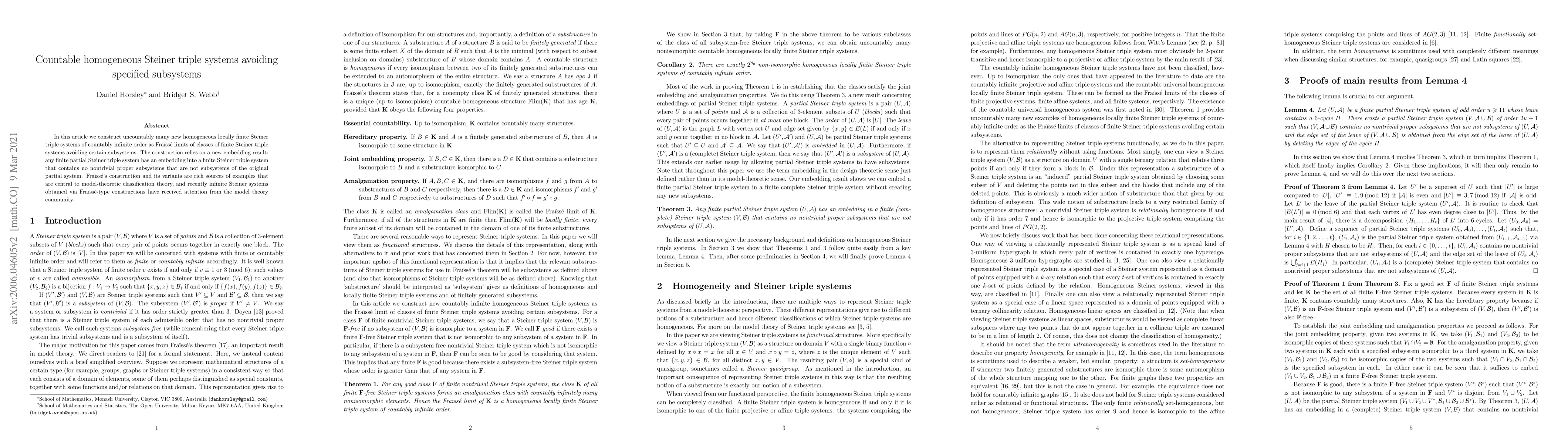 This paper constructs uncountably many homogeneous Steiner triple systems of countably infinite order by using Fraissé limits of finite systems avoiding specific subsystems. The construction leverages a new embedding result ensuring that any finite partial system can be embedded into a larger system without unwanted nontrivial proper subsystems.