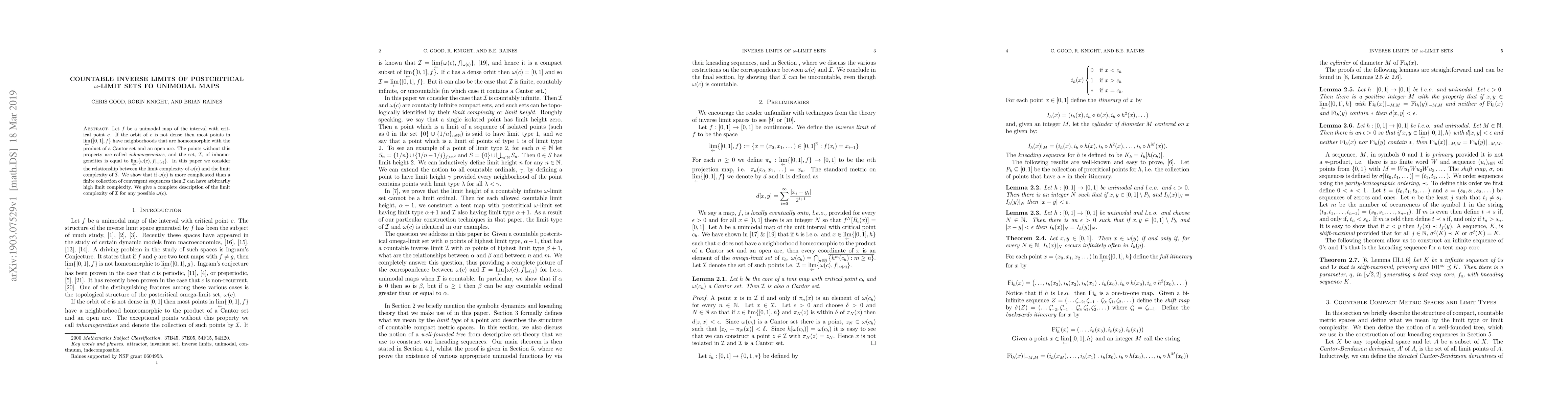 Let f be a unimodal map of the interval with critical point c. If the orbit of c is not dense then most points in lim{[0,1],f} have neighborhoods that are homeomorphic with the product of a Cantor set and an open arc. The points without this property are called inhomogeneities, and the set, I, of inhomogeneities is equal to lim {{\omega}(c),f| {\omega}(c) }. In this paper we consider the relationship between the limit complexity of {\omega}(c) and the limit complexity of I. We show that if {\omega}(c) is more complicated than a finite collection of convergent sequences then I can have arbitrarily high limit complexity. We give a complete description of the limit complexity of I for any possible {\omega}(c).
