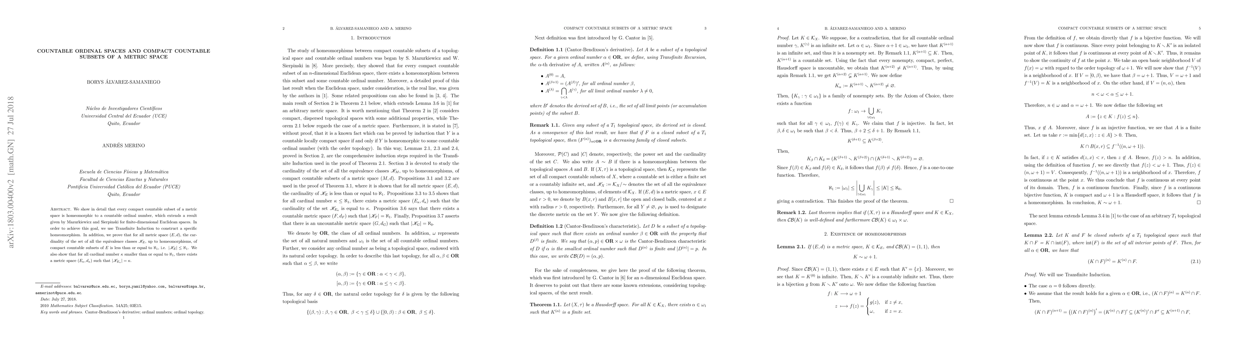 This paper demonstrates that every compact countable subset of a metric space is homeomorphic to a countable ordinal, extending a classical result for finite-dimensional Euclidean spaces. It also proves that the cardinality of equivalence classes of such compact subsets is bounded by $\aleph_1$.