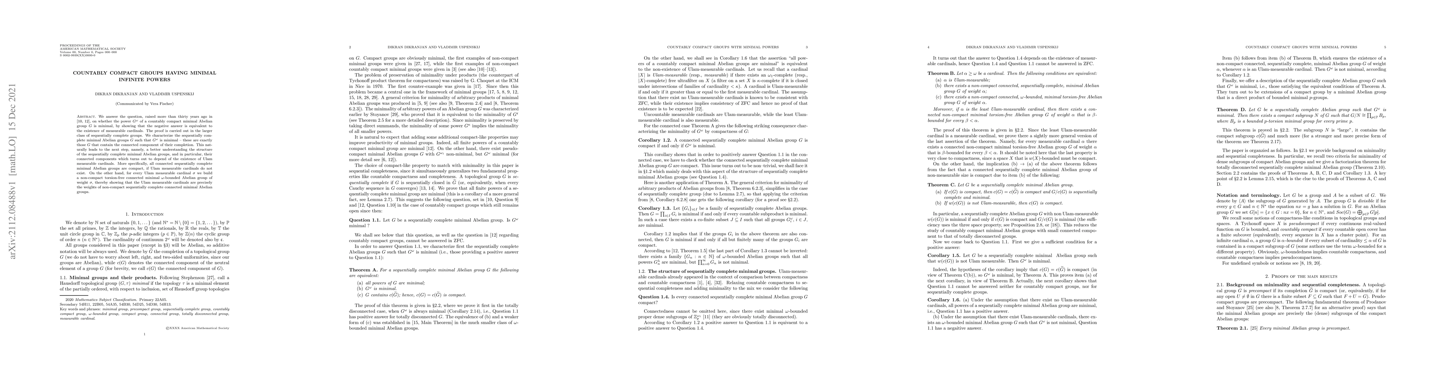 We answer the question, raised more than thirty years ago, on whether the power (G raised to the power omega) of a countably compact minimal Abelian group G is minimal, by showing that the negative answer is equivalent to the existence of measurable cardinals.
