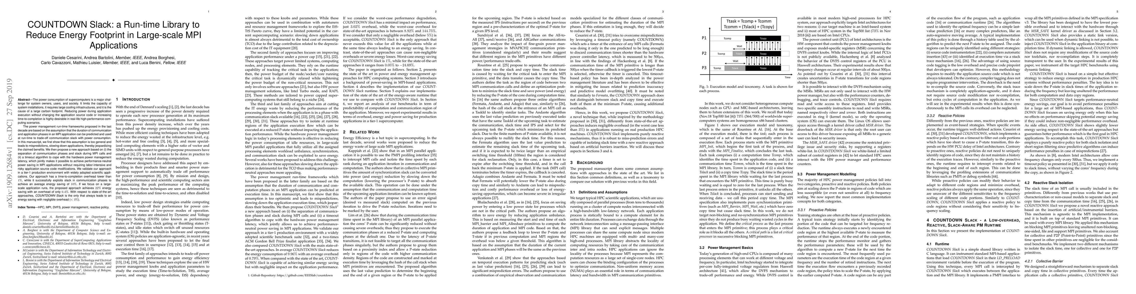 The power consumption of supercomputers is a major challenge for system owners, users, and society. It limits the capacity of system installations, it requires large cooling infrastructures, and it is the cause of a large carbon footprint. Reducing power during application execution without changing the application source code or increasing time-to-completion is highly desirable in real-life high-performance computing scenarios. The power management run-time frameworks proposed in the last decade are based on the assumption that the duration of communication and application phases in an MPI application can be predicted and used at run-time to trade-off communication slack with power consumption. In this manuscript, we first show that this assumption is too general and leads to mispredictions, slowing down applications, thereby jeopardizing the claimed benefits. We then propose a new approach based on (i) the separation of communication phases and slack during MPI calls and (ii) a timeout algorithm to cope with the hardware power management latency, which jointly makes it possible to achieve performance-neutral power saving in MPI applications without requiring labor-intensive and risky application source code modifications. We validate our approach in a tier-1 production environment with widely adopted scientific applications. Our approach has a time-to-completion overhead lower than 1%, while it successfully exploits slack in communication phases to achieve an average energy saving of 10%. If we focus on a large-scale application runs, the proposed approach achieves 22% energy saving with an overhead of only 0.4%. With respect to state-of-the-art approaches, COUNTDOWN Slack is the only that always leads to an energy saving with negligible overhead (<3%).