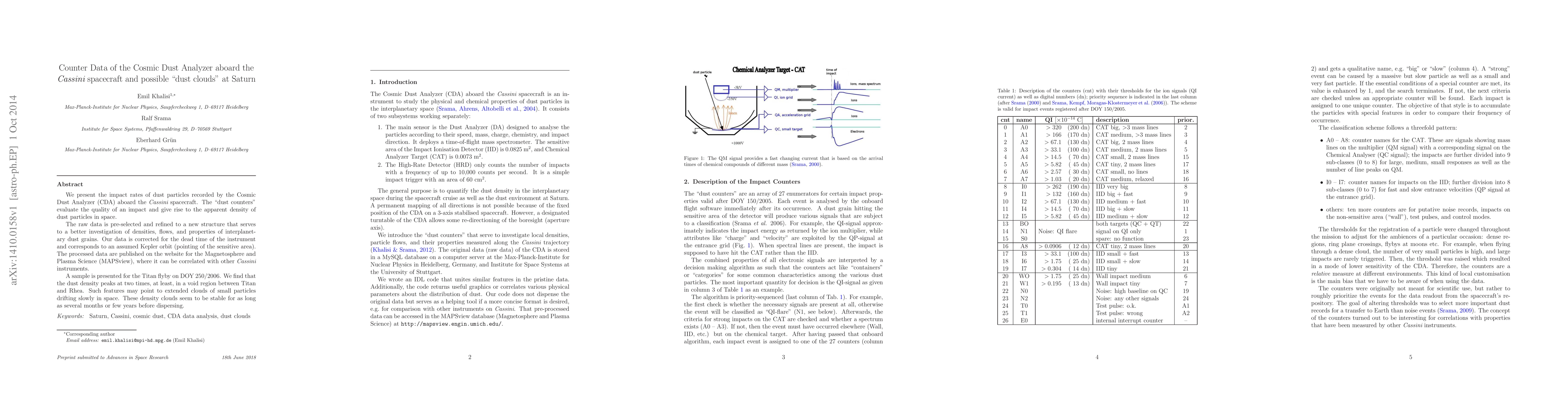 The Cosmic Dust Analyzer aboard the Cassini spacecraft recorded dust particle impact rates, revealing density peaks in a void region between Titan and Rhea, suggesting stable, extended dust clouds for months or years. The refined data is available on the MAPSview website for further analysis.