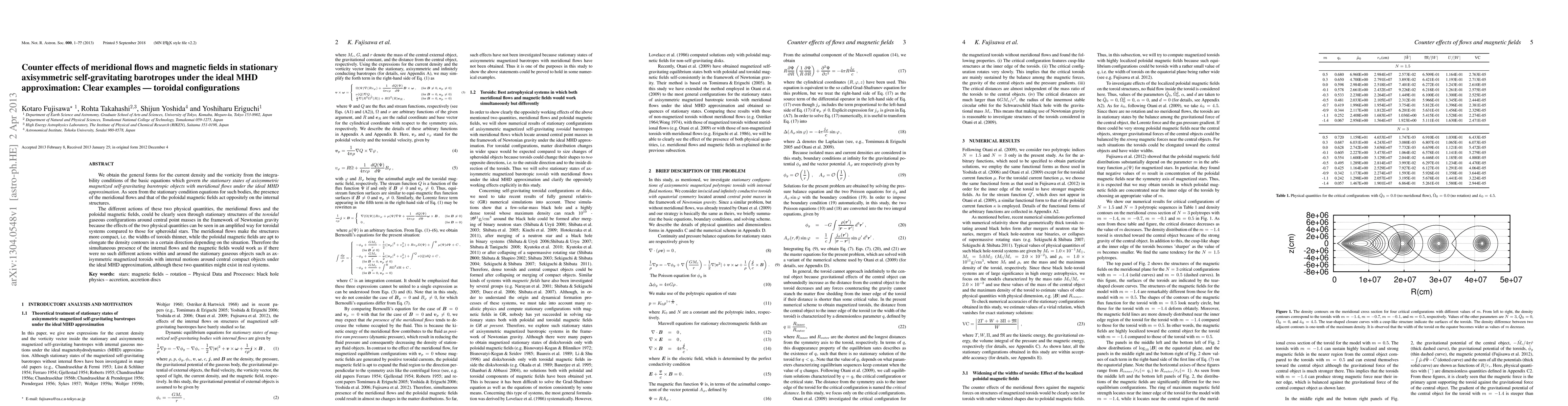 This paper explores the counter effects of meridional flows and poloidal magnetic fields in stationary axisymmetric self-gravitating barotropes under ideal magnetohydrodynamics. It reveals that meridional flows compact structures, while poloidal magnetic fields elongate them, with these effects clearly demonstrated in toroidal gaseous configurations.