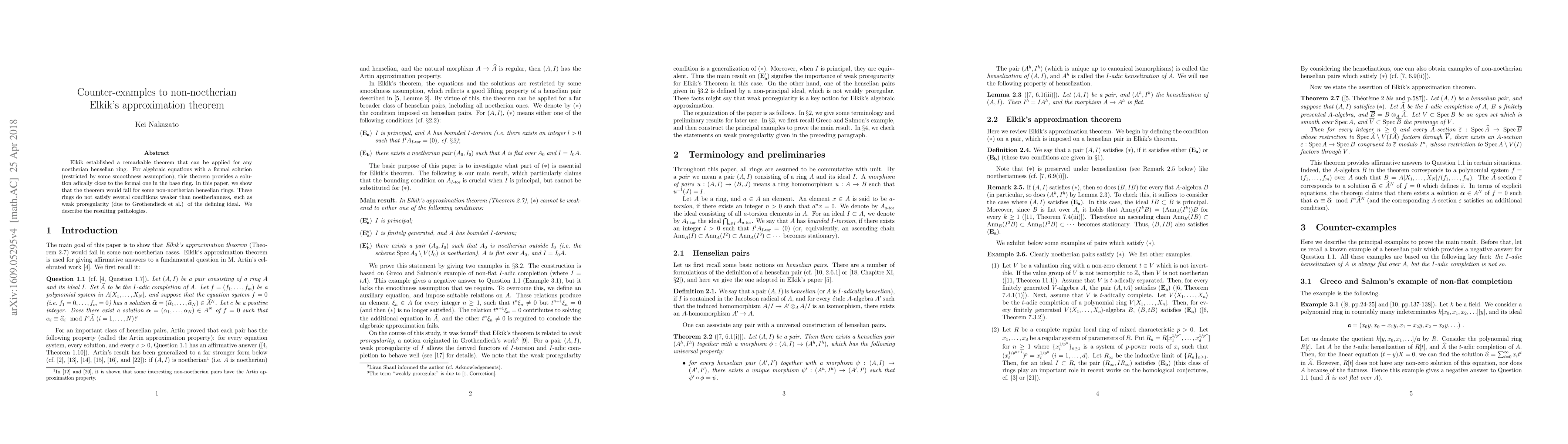 Elkik established a remarkable theorem that can be applied for any noetherian henselian ring. For algebraic equations with a formal solution (restricted by some smoothness assumption), this theorem provides a solution adically close to the formal one in the base ring. In this paper, we show that the theorem would fail for some non-noetherian henselian rings. These rings do not satisfy several conditions weaker than noetherianness, such as weak proregularity (due to Grothendieck et al.) of the defining ideal. We describe the resulting pathologies.